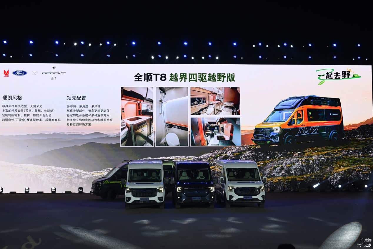 此次伴随江铃福特全顺T8的上市发布,致力打造美好生活生态圈的江铃福特从消费者深层需求出发,推出了房车共创产品——江铃福特全顺T8越界露营大师版、江铃福特全顺T8越界四驱越野版、江铃福特全顺T8卫航商旅公务版、江铃福特全顺T8江旅四季全能版、江铃福特全顺T8宇通四海畅享版、江铃福特全顺T8瑞弗五星尊享版。价格区间为29.80-59.80万元,满足当下消费者时尚、多元化的需求。