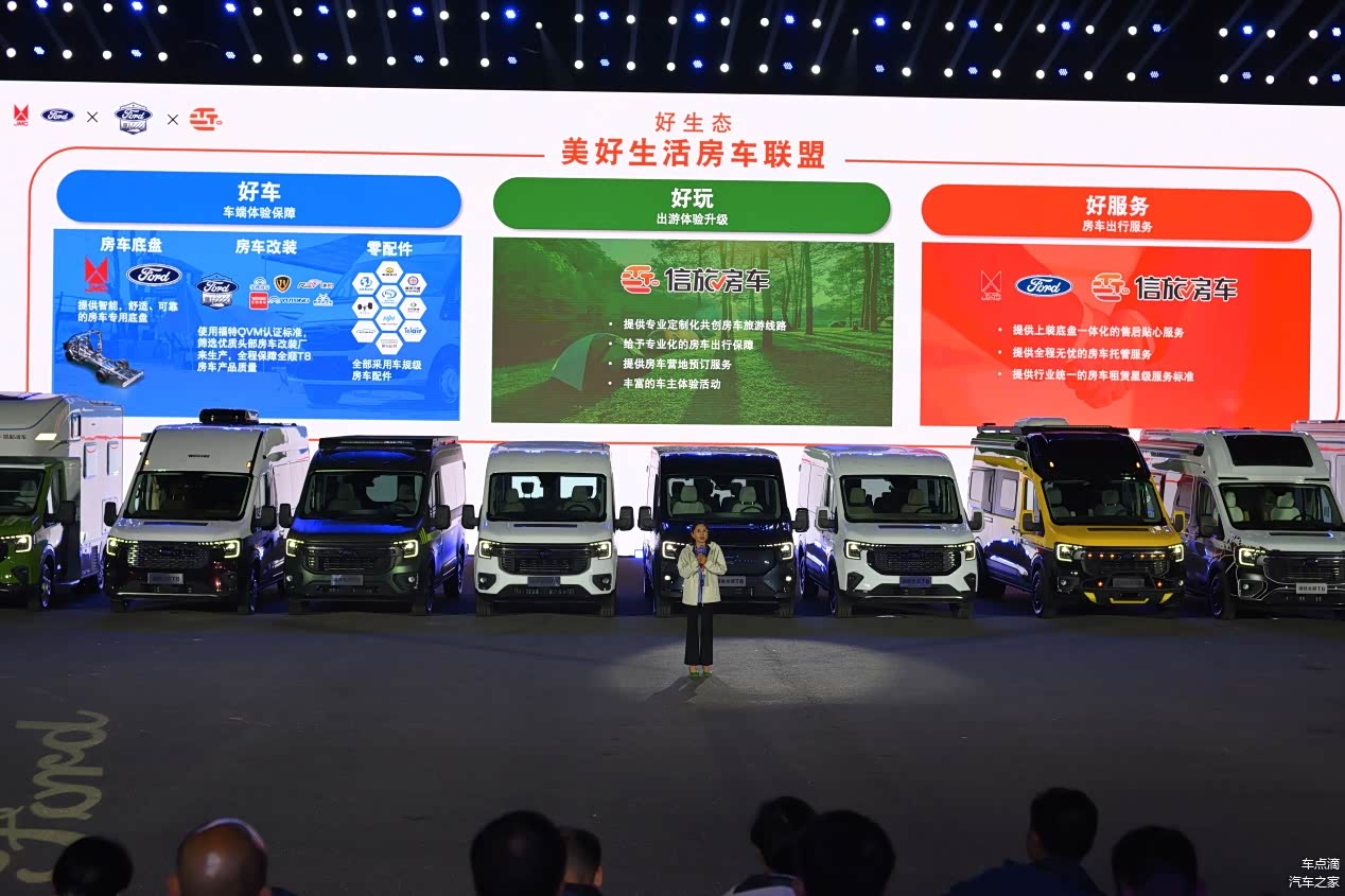 每款房车各具特色,为不同使用场景而生,提供用户个性化的场景解决方案。与此同时,江铃福特携手头部QVM认证改装厂、国内头部的房车零部件厂商和房车租赁企业信旅房车,共同开启“好车·好玩·好生态”美好生活房车联盟,打造全链路的出行生态,为热爱生活,向往美好生活的用户,构建完整的房车生态圈,让他们能玩的开心、舒心、安全。