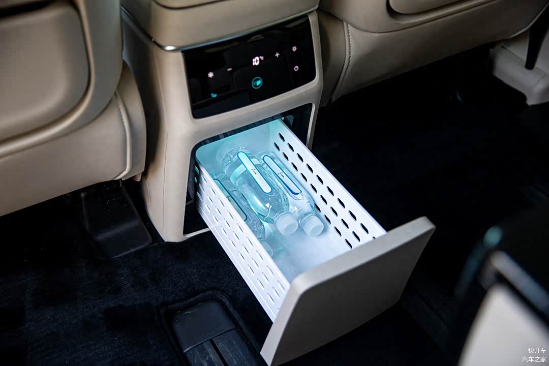 与此同时,同级唯一的三排蝶式座椅,让第三排座椅同样很宽厚,实际体验下来舒适度和第二排座椅不会相差太大,甚至在开车君看来,该款车型的第三排舒适性应该是同级别中最为突出的了。另外,不会因为是第三排就忽略了一些细节,比如配备了手动遮阳帘,超大尺寸的侧窗面积。当然啦,车载小冰箱也没有被忽略,在天气热的情况下,全车人员都能因为这个而受益。