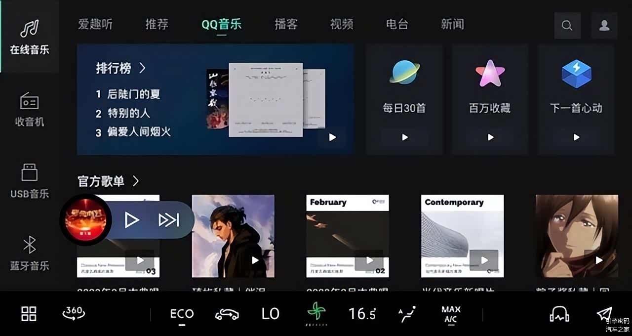 多媒体升级:领克01/02/03/05的系统音频软件换装“腾讯爱趣听”,含QQ音乐、口袋故事、微信读书等功能,娱乐体验更丰富。
