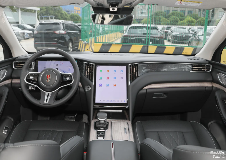 进入红旗HS7车内,环抱式的座舱设计看上去特别舒服,纵向布局的中控屏幕采用嵌入式设计,两侧的空调出风口像是一对翅膀,具体尺寸在12.6英寸。而用料上面也是多元设计,分别是运用了皮质材料、木纹装饰以及搪塑材料。全液晶仪表屏在12.3英寸,属于标准尺寸,多功能方向盘真皮包裹,并且自带加热功能。而从一些细节功能上来说,头顶安置了可开启全景天窗,提供丹拿音响,标配10个扬声器,可升级成12个扬声器,对于音乐不敏感的人来讲,差异不是特别大。