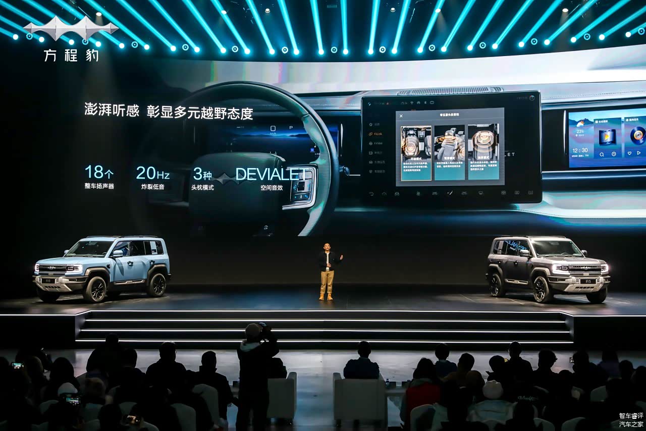 音响则是采用了跟腾势N7相同的法国帝瓦雷音响,18扬声器,3种头枕音响模式,还能在车内K歌。此外,座椅是Nappa真皮座椅,前排带通风/加热/按摩功能。中央扶手处配有压缩机冷暖冰箱、可升降杯托。以上这些完全满足一款豪华SUV的标准,硬派越野同样可以享有舒适的车内空间。