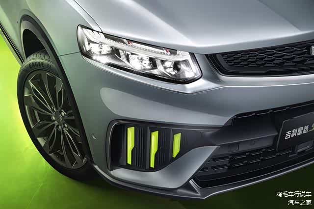 对于即将进入国内市场的新车来说,颜值相当重要,因此先来看看星越S的外观方面。来到该车正前方,一眼就能看到采用凹凸设计的机盖,机盖下沿搭载扁平化盾形格栅,格栅内部搭载熏黑网状式设计的中网,盾形的LOGO也镶嵌在中间位置,在格栅两侧还能看到多边形的大灯,且大灯、格栅中间分别围绕细长银色镀铬装饰条,此部分设计并不复杂,但具有一定亮眼度。前保险杠处的设计较为复杂,两侧分别镶嵌大尺寸多边形熏黑装饰板,该装饰板表层分别镶嵌3条竖向摆放的绿色装饰条。而保险杠中间搭载熏黑式进气格栅,该格栅中间还搭载不规则宽体装饰条,将其分为上下两侧,整个设计凸显该车运动性和个性化。