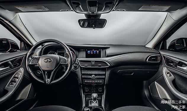 内饰方面,采用了专属于紫玉黑“极夜版”的全黑色内饰,局部黑得发亮,局部淡黑,运动颜色深浅的手法设计出一款非常带有运动感的内饰,并没有显得枯燥乏味,内饰布局上与GLA尤为相似,采用的是非对称式的布局,局部还运用不规则的线条加曲线勾勒,比以往的英菲尼迪SUV更加美观,且大面积采用皮质软包,不仅摸着很舒服还彰显档次,配置方面,搭载了GLA不具备的零重力座椅(能够减轻驾驶疲劳,且坐着也十分舒适),座椅加热,ESP,全景天窗,还有胎压监测等。
