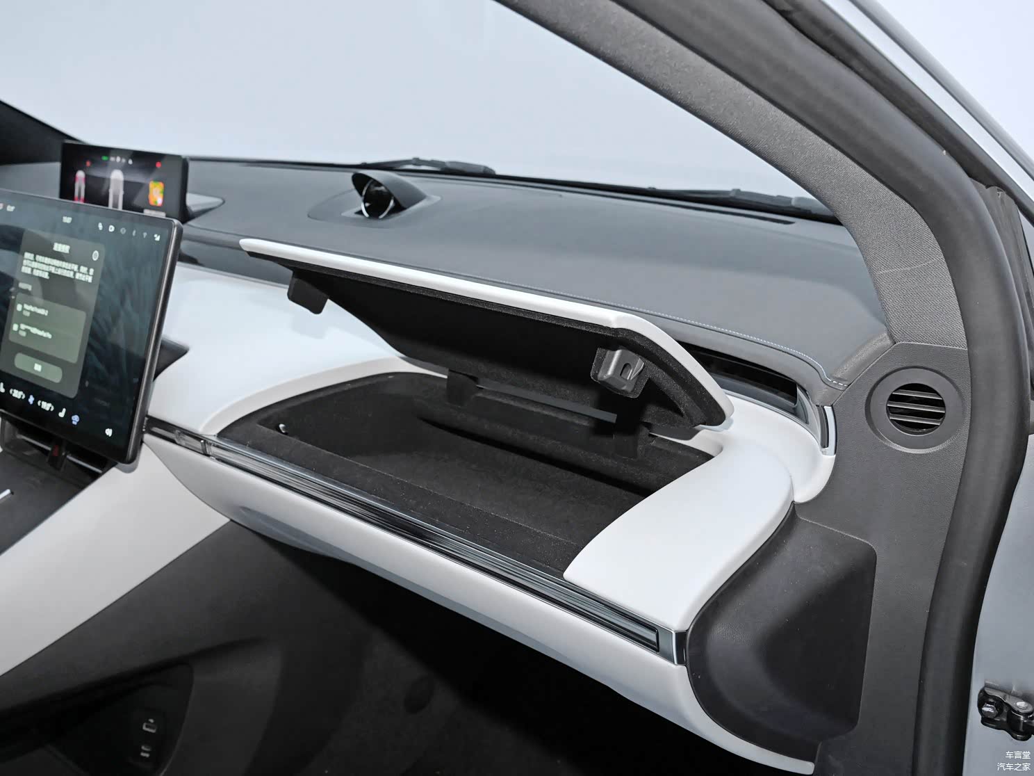 进入车内,环抱式中控台首先会映入眼帘,中间是一块15.6英寸触控大屏,搭载鸿蒙4.0系统,流畅度、易用性和功能性在行业属于领先地位。驾驶员前方的仪表盘仍然保留,使用起来更为方便。不过椭圆形方向盘的使用需要适应。由于中控台采用扁平化设计,所以前方有着不错的视野,同时副驾驶前方仪表台也很平整,根据官方宣传这里甚至可以放一个笔记本进行办公,下方的储物格可以放置化妆品,不知这样的使用场景是否真的是用户所需要的。