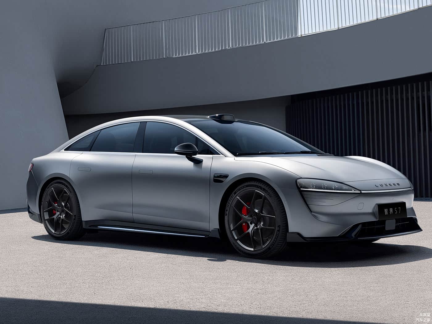 具体来看,智界S7外观造型圆润饱满,经过多重优化,风阻系数仅为0.203Cd。前后舱尽可能缩短,将最大的空间留给乘员舱,从而带来更好的乘坐体验。整体风格设计简洁时尚,使用了新能源车流行的封闭式中网设计,弧形大灯有着不错的辨识度,中间是贯穿式灯带以及LUXEED车标。如果是运动版车型,将会配备运动包围、黑化套件、更大尺寸的轮圈、高性能刹车以及尾翼等。尺寸方面,长/宽/高分别为4971/1963/1474mm,轴距为2950mm。它会提供暖星云、天青蓝、霜月银、鎏金黑、陶瓷白共五种颜色可选。尾部造型的设计并不复杂,配有贯穿式尾灯,运动版的后包围还有导流槽,普通版则更为内敛一些。