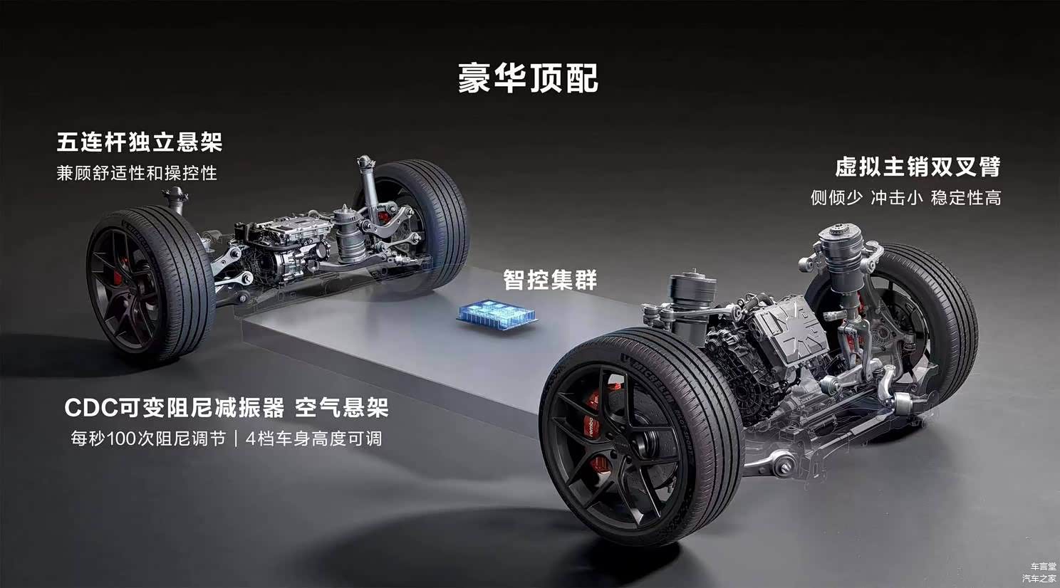 性能方面,单电机后驱车型最大功率215kW,双电机四驱车型最大功率365kW,有62kWh、82kWh和100kWh三种容量电池,均来自宁德时代,CLTC纯电续航里程有550km、630km、705km和855km四种。