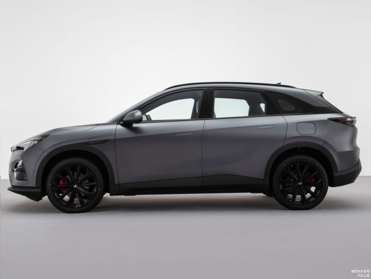 极狐阿尔法T5的车身侧面也较为动感,车身呈现向下俯冲的姿态,车窗则采用从前往后的宽度收缩设计,形成了比较丰富的形态变化。极狐阿尔法T5的轮毂更像燃油车的造型,内部加入了红色刹车卡钳罩。