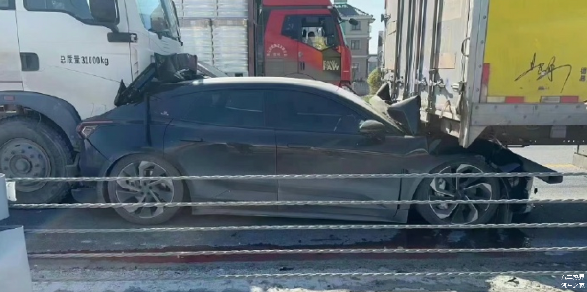 上图中一辆极氪001发生了很严重的车祸,撞成这样,人有没有事?实际情况是:这台黑色的极氪001应该是被后方大货车追尾后,又推着向前撞上了前方的另外一台厢货车虽然车头和车尾受损十分严重,但其30%的超高强度钢占比的整体框架依旧完整,A、B、C柱坚挺,据说车祸发生后,极氪001的驾驶员自行打开车门走了下来,并未受伤,这足以证明极氪001对于驾驶员超高的安全保障。