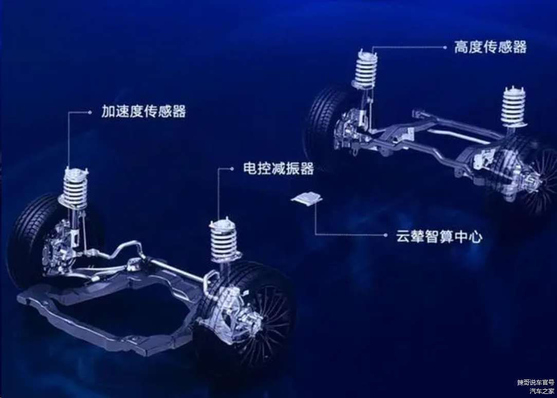 很明显,比亚迪的云辇C、云辇A、云辇P构成了“舒适、运动、越野”的三种性能形态,既属于主动悬挂的类目,但有别于传统主动悬挂的地方在于,云辇系统有一套智能神经系统(控制传输系统)和主控大脑,可以实时调节车身姿态。