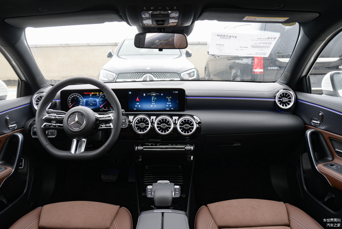 进入车内,奔驰A级的整体布局虽然比不上奔驰C级和E级那样“豪气”,但是做工、用料方面依然保持了奔驰一贯的水准,中控区域匹配有10.25英寸双联屏、皮质三幅式多功能方向盘以及电子怀挡,并保留了经典的圆形空调出风口造型,整体造型还是比较抗打的。
