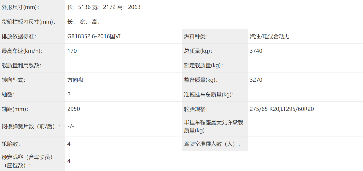 车身尺寸方面,新车申报的长宽高分别为5136/2172/2063mm,轴距为2950mm,除了轴距和猛士917(长宽高分别为4987/2080/1935mm)保持一致之外,其余数据都要更大一些,应该会定位中大型SUV,车内采用4座布局。