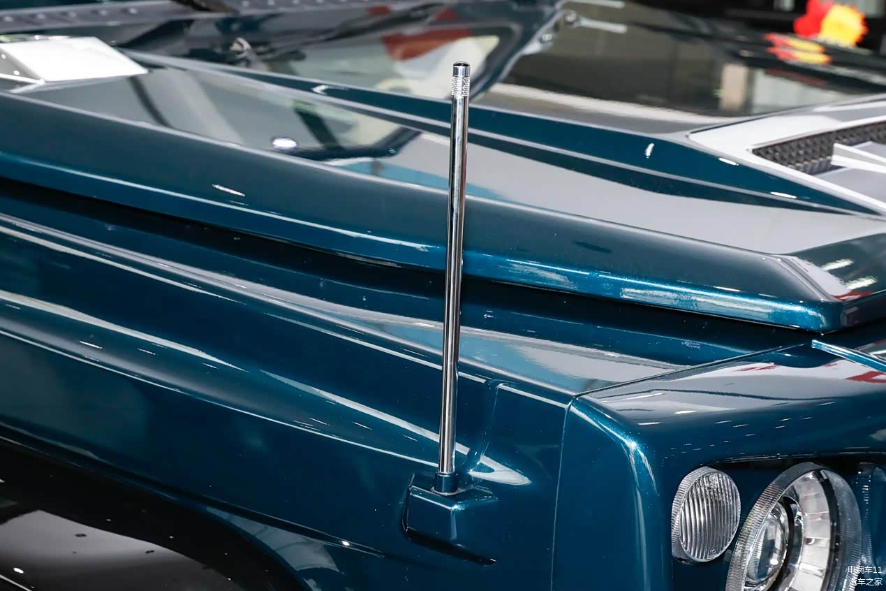 BJ80的最大特色,其实就是它的外观和奔驰G级如出一辙,甚至有很多人购买了BJ80之后将它直接改成了奔驰的标志。这辆珠峰版车型正如其名,车顶是白色车身则是蓝色,和普通车型的外观相比,辨识度还是比较高的,甚至还在右前翼子板的位置配备了旗杆,这也和他的军用车身份有关。