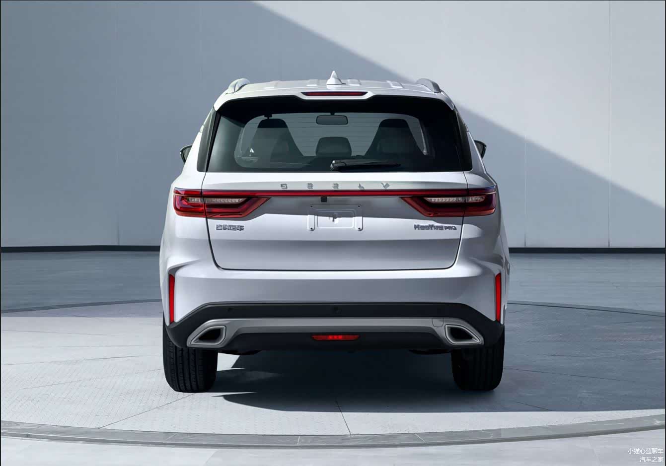 外观设计方面,豪越PRO采用全新设计风格,无边界前格栅和两侧大灯组,采用一体式设计,格栅内部采用点阵式设计,LED大灯下方的进气口采用三段式设计。车身侧面是标准SUV样式,与远景X6相似度很高。车尾采用目前流行的贯穿式设计,通过一条纤悉的灯带将两侧尾灯连接起来,贯穿式灯带上方是“GEELY”车标。车身尺寸方面,豪越PRO的长宽高分别为4518mm、1834mm、1715mm,轴距2666mm,相比远景X6PRO的4518mm、1834mm、1715mm和2661mm,它的变化是轴距增加了5mm。