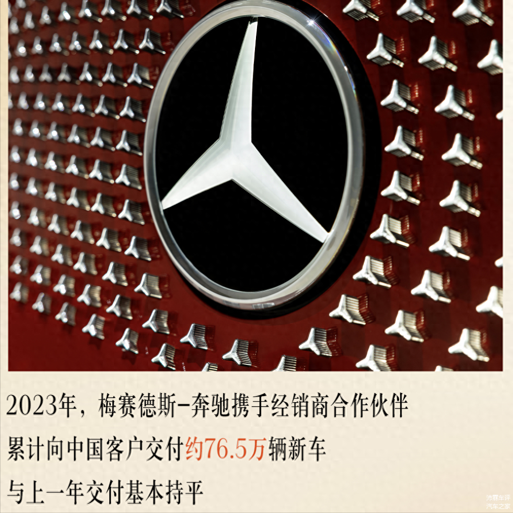 1月11日,梅赛德斯-奔驰公布最新销量数据,2023年全年,在中国市场累计交付约76.5万辆新车,与2022年交付水平基本持平。