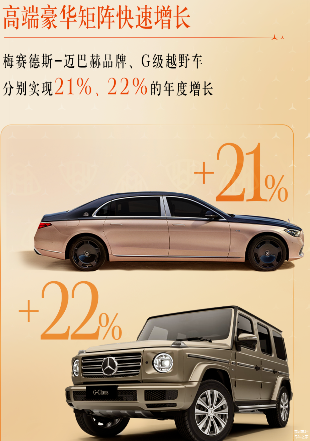 梅赛德斯-迈巴赫品牌、G级越野车分别实现21%、22%的年度增长