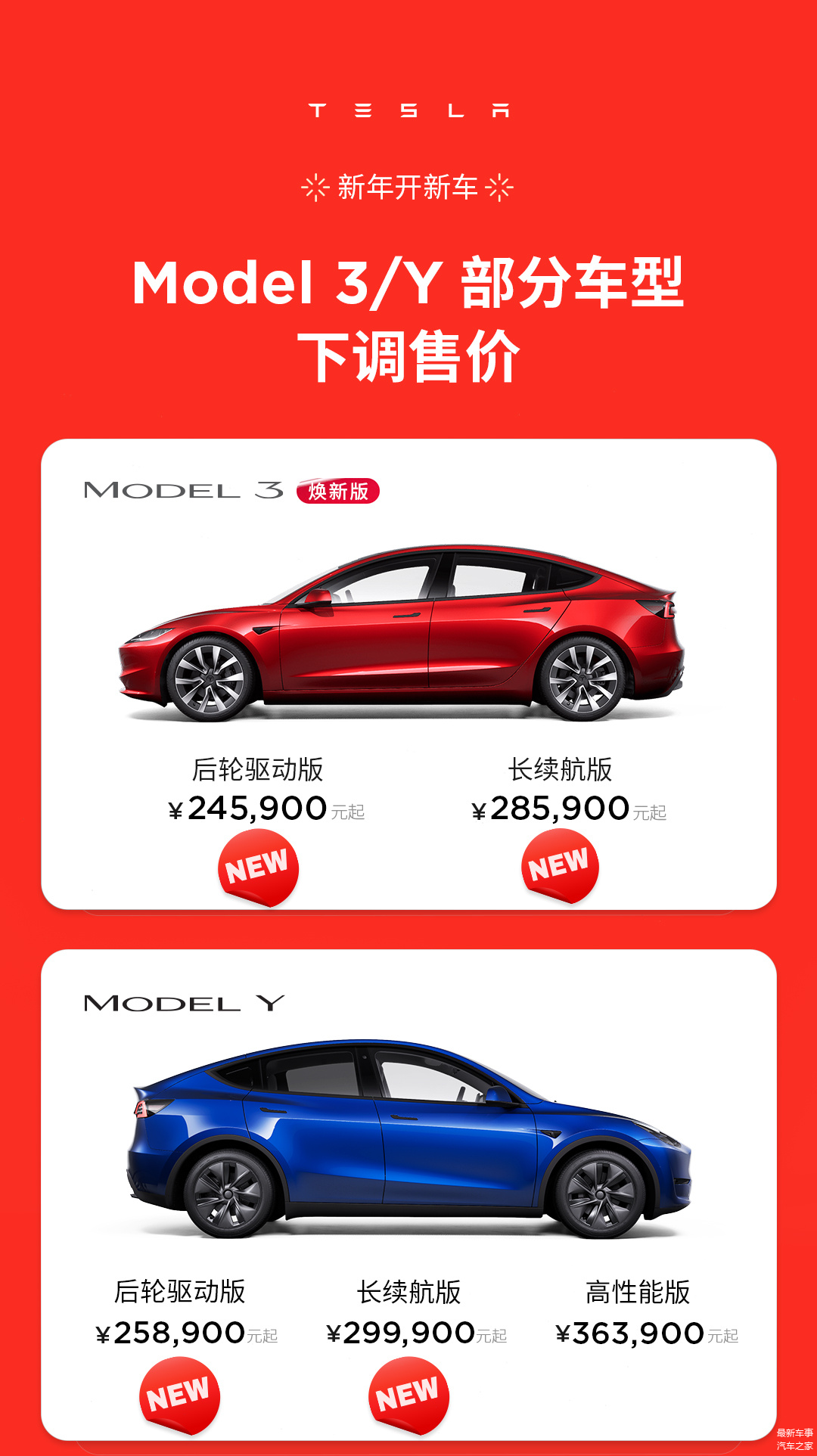 本次降价是特斯拉进入2024年的首次价格下调,并且据悉特斯拉在中国的售价是全球最低。以Model Y后轮驱动版为例,中国市场的起售价为25.89万元,比德国、法国、加拿大等市场便宜了10万元以上。本次中国市场中,Model 3焕新版的售价下调了1.55万元,调整后的价格为24.59万元;Model 3长续航焕新版的售价下调了1.15万元,最新售价为28.59万元。此外,Model Y后轮驱动版的售价下调了0.75万元,调整后指导价为25.89万元;Model Y长续航版的售价下调了0.65万元,调整后指导价为29.99万元。而Model Y高性能版的售价保持不变,仍为36.39万元。