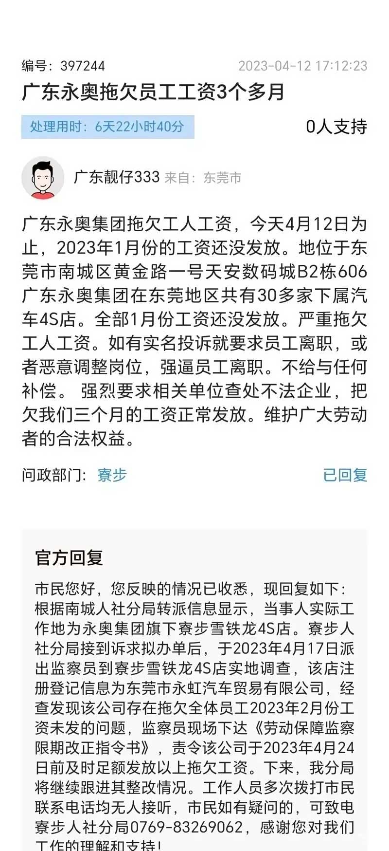 早在去年年初,永奥集团就被曝光过欠薪事件: