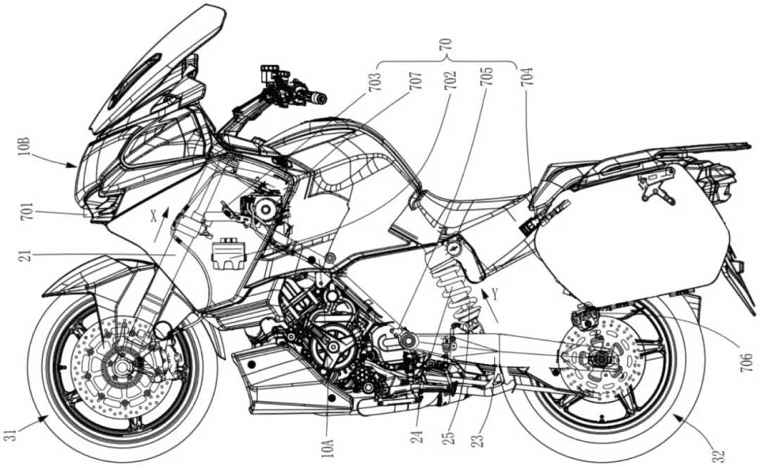 这项新专利以1250TR-G为基础设计也是情理之中,在高端的旅行车型上主动悬架比较常见,也是提升舒适度的必备功能配置。尽管1250TR-G最初宣布采用,KTM同款的WP半主动悬架,但目前在售的1250TR-G配备的并非电子减震,而是Marzocchi的倒立式前减震,1250TR-G自2020年首次推出以来,只进行了小幅度的升级。但如果如最新专利所证明的那样,1250TR-G采用这种半主动悬架,显然对于现在的国产摩托车行业是一大突破。