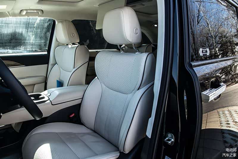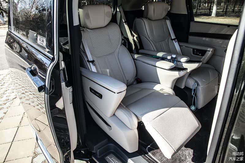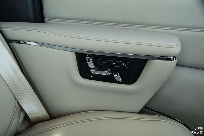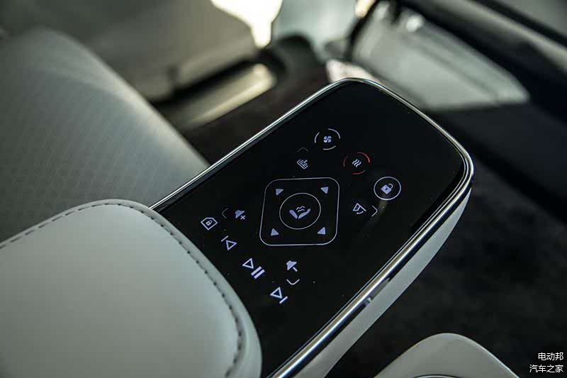 它的二排是两个独立的航空座椅,上面配备了电动调节、加热、通风、8向按摩、电动腿托,以及头枕环绕音响。它们都采用了Nappa真皮材质,靠背、坐垫和腿托的长度都很合适,完全展开之后,确实能让不同身材的乘客都能坐得很舒服。另外无论是操控座椅的按键,还是「触控式扶手屏」,它们带来的都是很便利的体验,也很有高级质感,可谓一举两得。