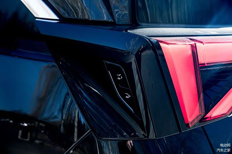 车尾部分的设计亮点主要就是很有辨识度的贯穿尾灯,它无论是造型还是高度位置都与前面的贯穿日行灯带相呼应,同样有挺拔身姿的效果。而在实用性上,合创V09全系标配带高度记忆的电尾门,不过它的开关是在左侧D柱上,是两个独立触控键,还挺方便的。