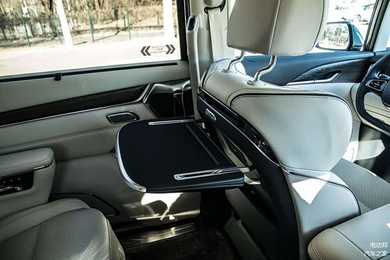 说起小桌板,合创V09从「尊荣版」开始,都在主驾座椅背后标配了可收纳小桌板,而且这个桌面上还有个小凹槽,既可以放笔,也能立个Pad,很方便。而副驾背后的可收纳小桌板则需要单独付费选装,不过仅需1千元,倒也是不贵,建议大家配齐。