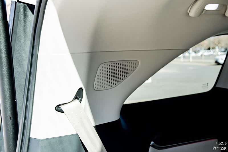 当然了,这里的配置也足够拉满,杯架、USB接口、独立空调出风口、阅读灯,甚至独立扬声器都是每侧一组。其中最让我印象深刻的是音响系统,当前面的屏幕放音乐或视频的时候,我们在第三排能通过D柱内侧的扬声器听到清晰立体的优质音效。
