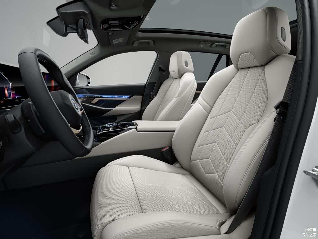 在内饰部分,新车在前排没有多少意外,与国内在售的车型没有任何区别,双联悬浮式大型液晶屏Hud抬头显示,燃油三幅,纯电两幅的方向盘,错落式的水晶式气氛灯带,悬浮式的换挡区域,水晶式旋钮和拨杆式换挡等元素都不会缺席,显示出不错的时尚感。当然i5 M60旅行版加入了大面积碳纤维面板,可选装的翻毛皮和回正标志,刺激着驾驶者的运动神经。对一款旅行车,后排方面才是最大的重点,首先虽然是短轴距旅行版,但官方也并没有忽视后排的体验,加入了手动遮阳帘等配置,加上本就舒适的座椅,提供了不错的舒适性。