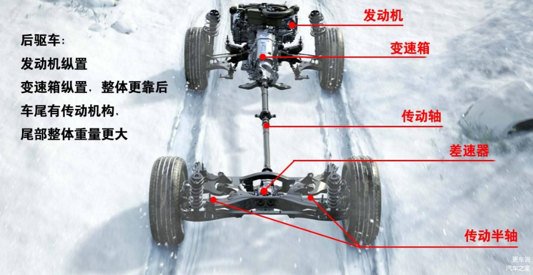 因此,在雪地上如果驱动轮打滑,后驱车很容易出现甩尾侧滑的现象,而前驱车则相对稳定得多。即使车头出现侧滑,司机也更容易通过调整方向盘来调节。