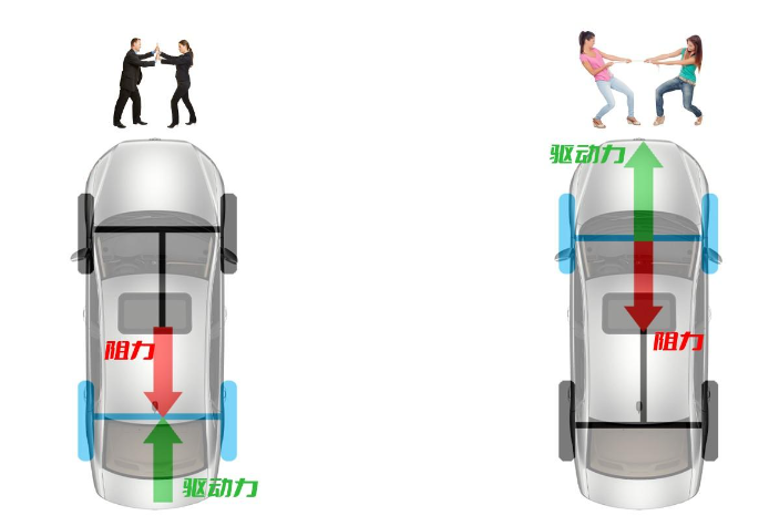 前驱车的驱动力来自前轴,方向向前;而前轴受到的车身阻力则向后,就像两个人手拉手往两边用力一样,合力方向非常稳定。而后驱车的驱动力来自后轴,方向向前;后轴受到的车身阻力则来自前方,就像两个人手掌对在一起互相推对方一样,合力方向不稳定。