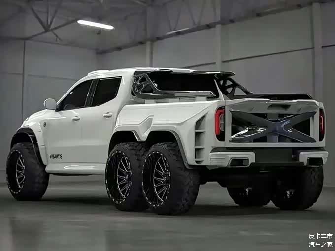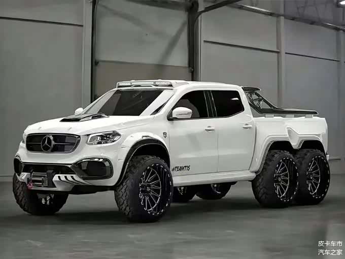 奔驰XClass 6X6基于2020款X350D打造,经过重新设计,副车架装上第三个车轴,此外悬挂提升了10厘米,安装大型越野轮胎和定制轮毂。搭载3.0T涡轮 V6柴油发动机,可支持最大输出255马力,峰值扭矩550牛米,匹配7速自动变速箱。整车前脸装配MT 2的水箱格栅,尾部配有防滚架,以及碳纤维陶瓷材质的刹车盘。