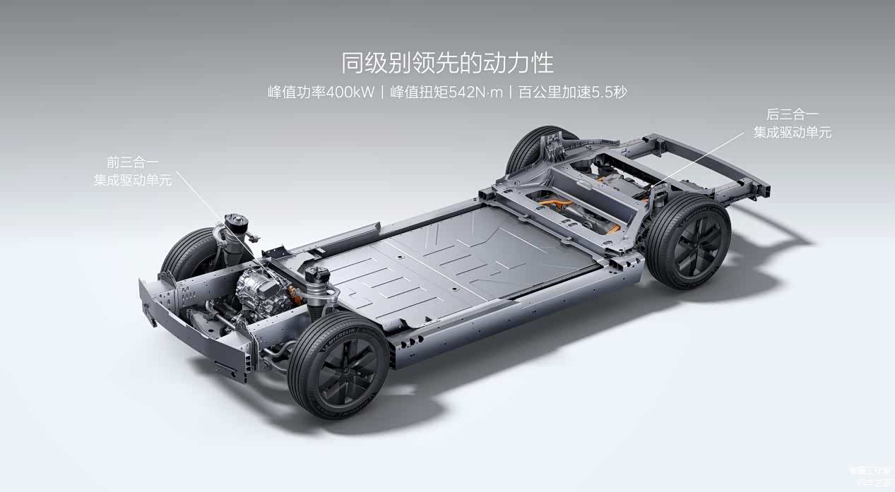 动力参数:双电机544马力,前电机由华为提供,后电机由联合电子提供,官方零百加速时间5.5秒。