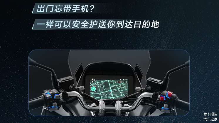 整车自带流量,不用手机热点也能轻松导航、播放音乐、查看天气、实时路况,并且还有20W的音响系统为骑行增添乐趣。安全方面还增加了前后双摄像头,记录路上发生的一切,确保自身权益。最关键的是很多功能无需动手,完全可以通过语音来控制。