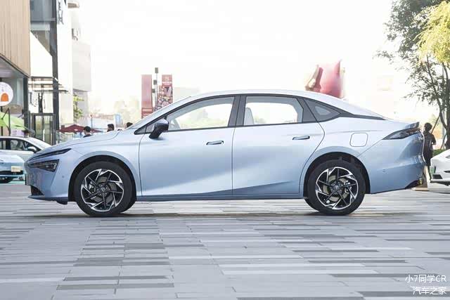 来到车身侧面,2024款AION S MAX 80 星瀚版的侧面车身绘制有多条棱线,并且整车姿态呈现出向前俯冲的视觉感。另外,该车还提供了前后隐藏式门把手、18英寸轮毂(235/45 R18)。