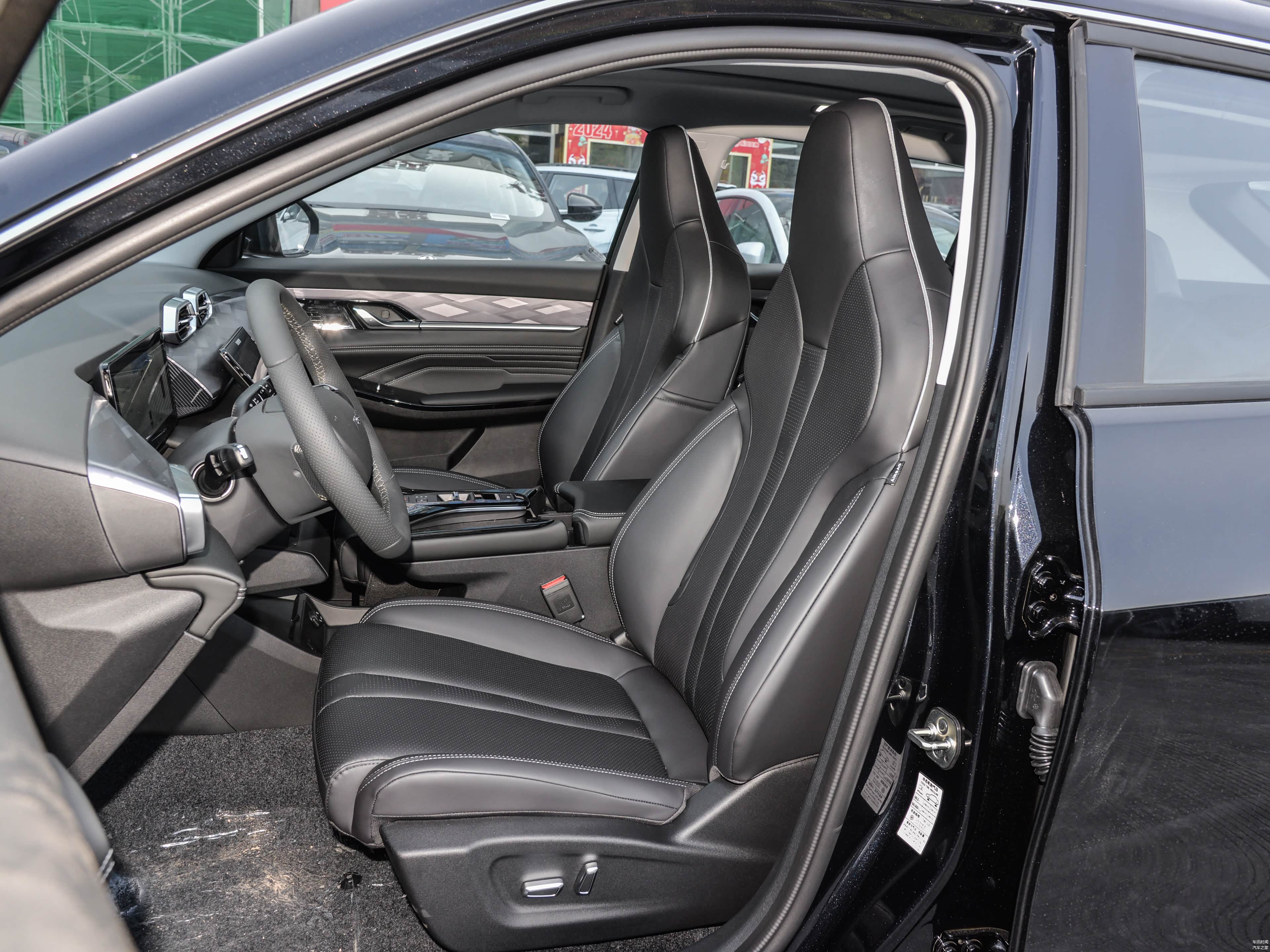 该款车型的轴距为2775mm,车身长度、宽度及高度分别为4650mmX1905mmX1630mm;采用了仿皮材质的座椅,其质地柔软,前排座椅还具备加热、通风(主驾驶位)等贴心功能。根据我们身高165cm的体验者在店内实测结果显示,前排标准驾驶位置头部空间余地仍有一拳;移至第二排后,腿部空间剩余两拳,头部空间余有一拳,整体空间表现堪称中上游水平。