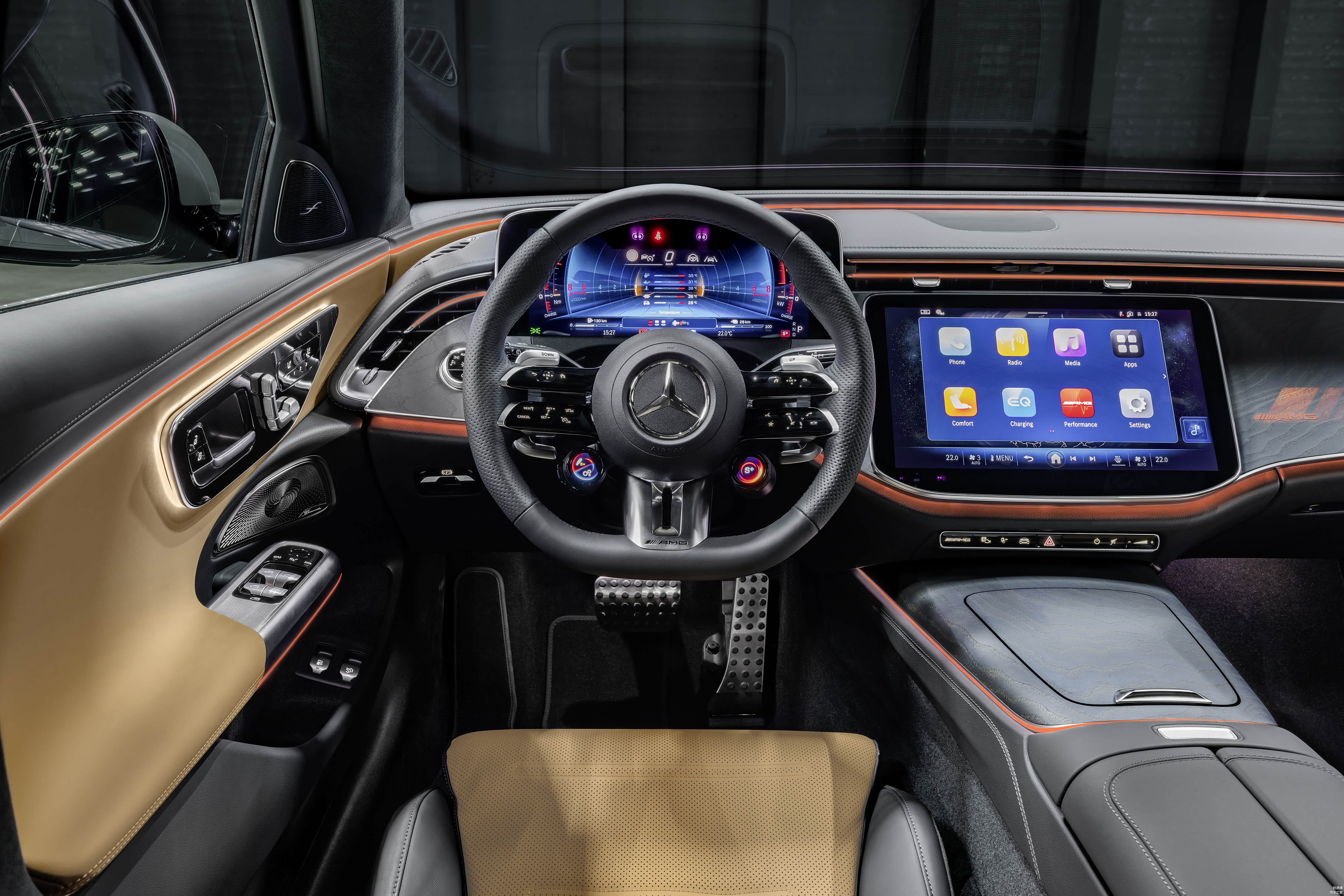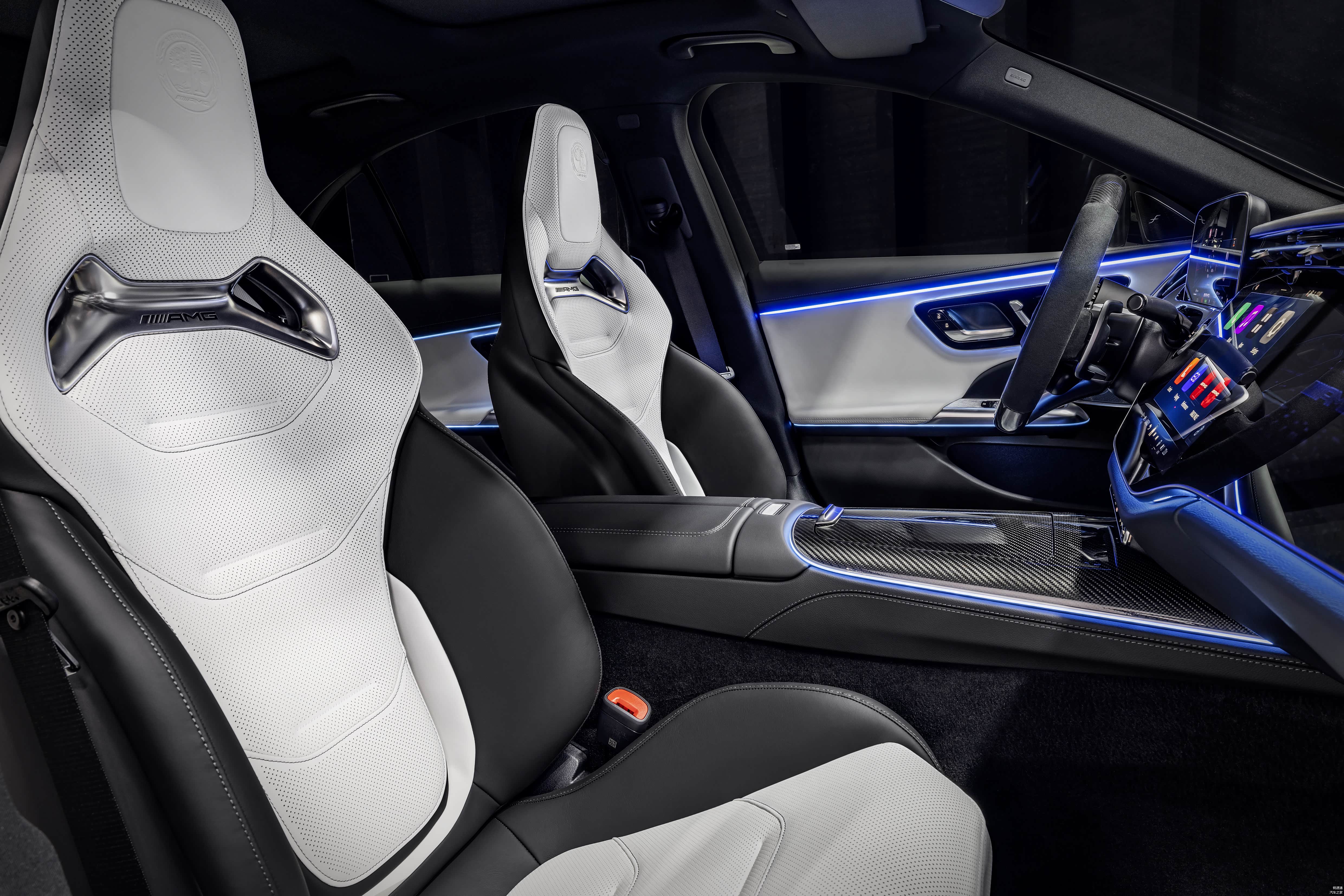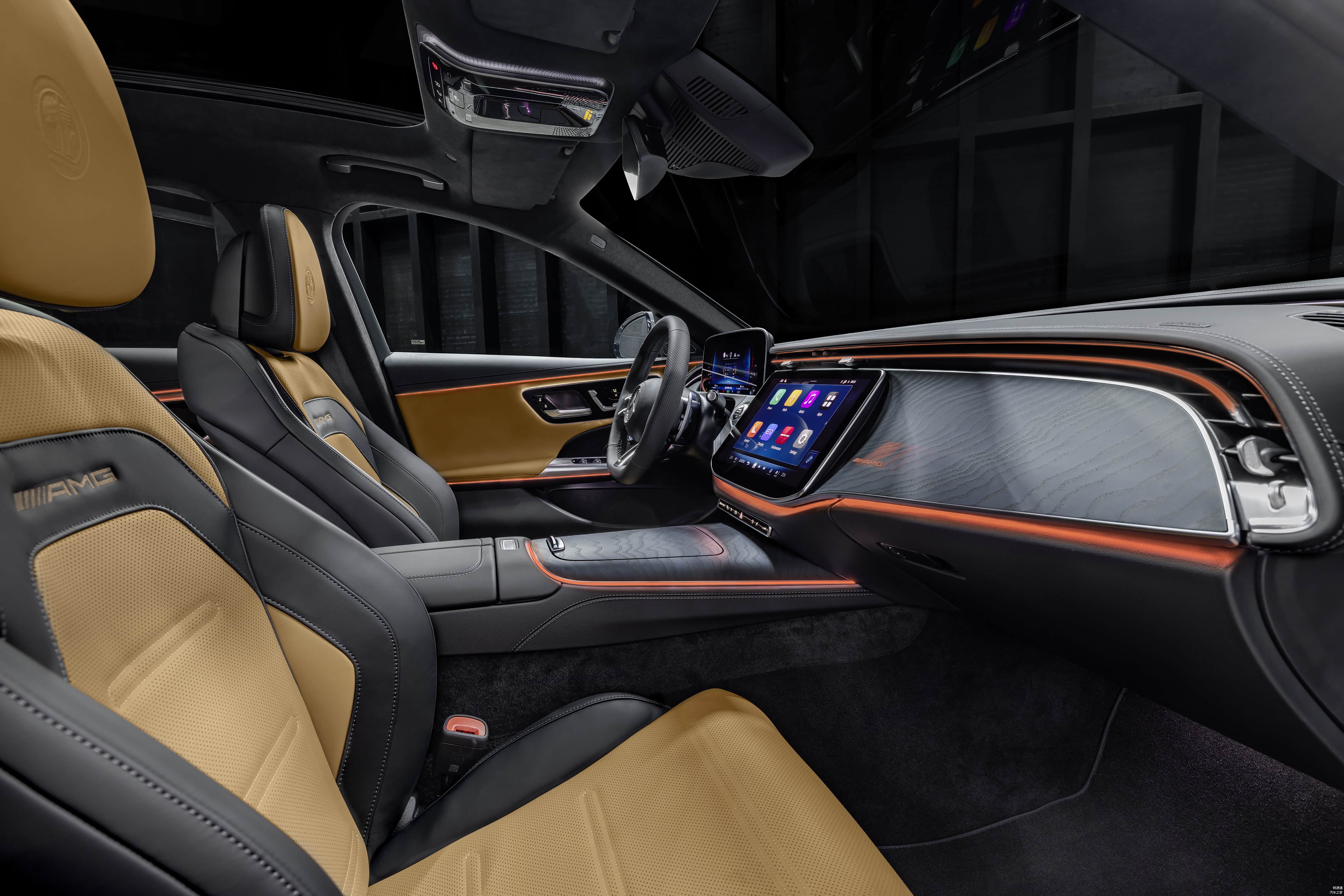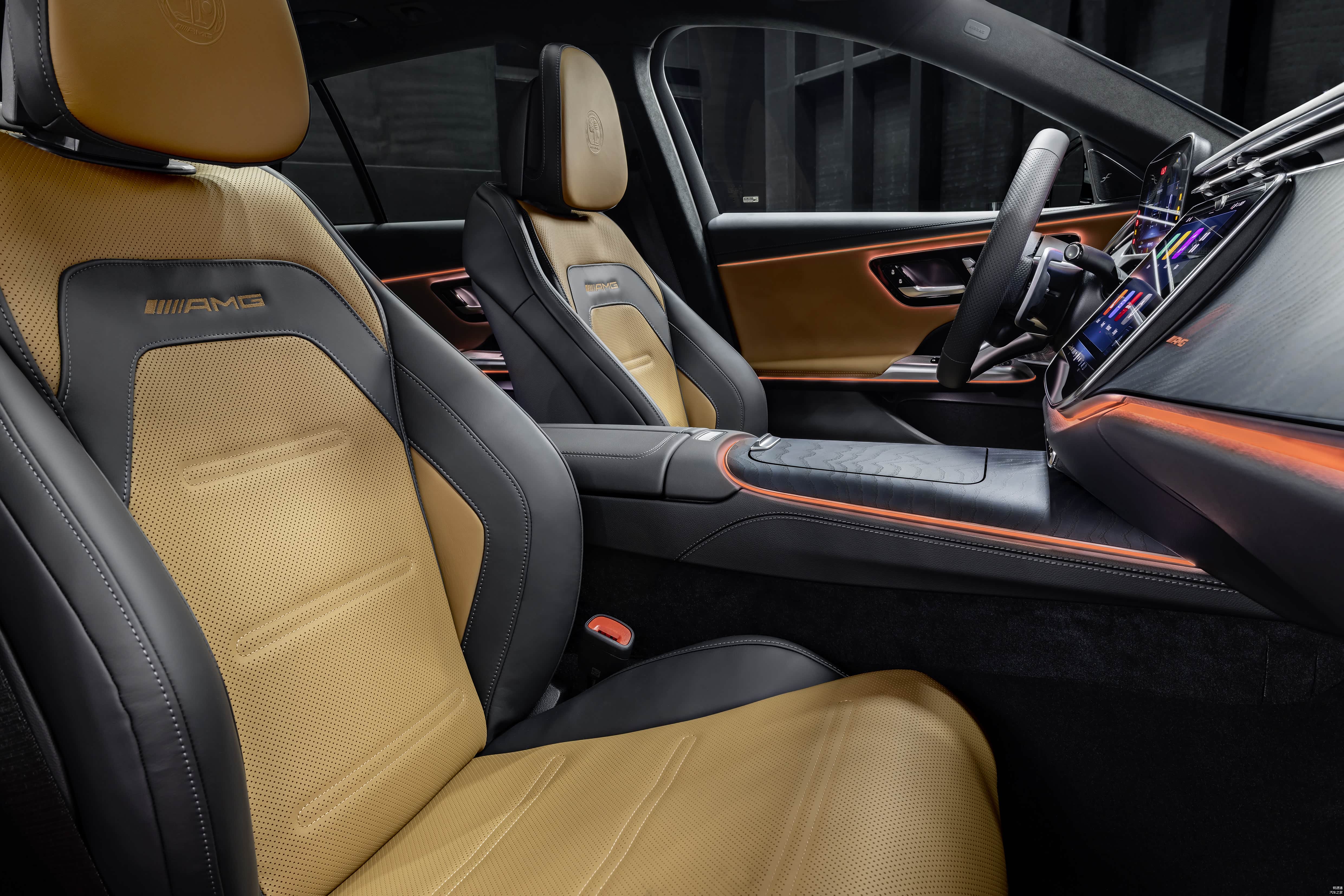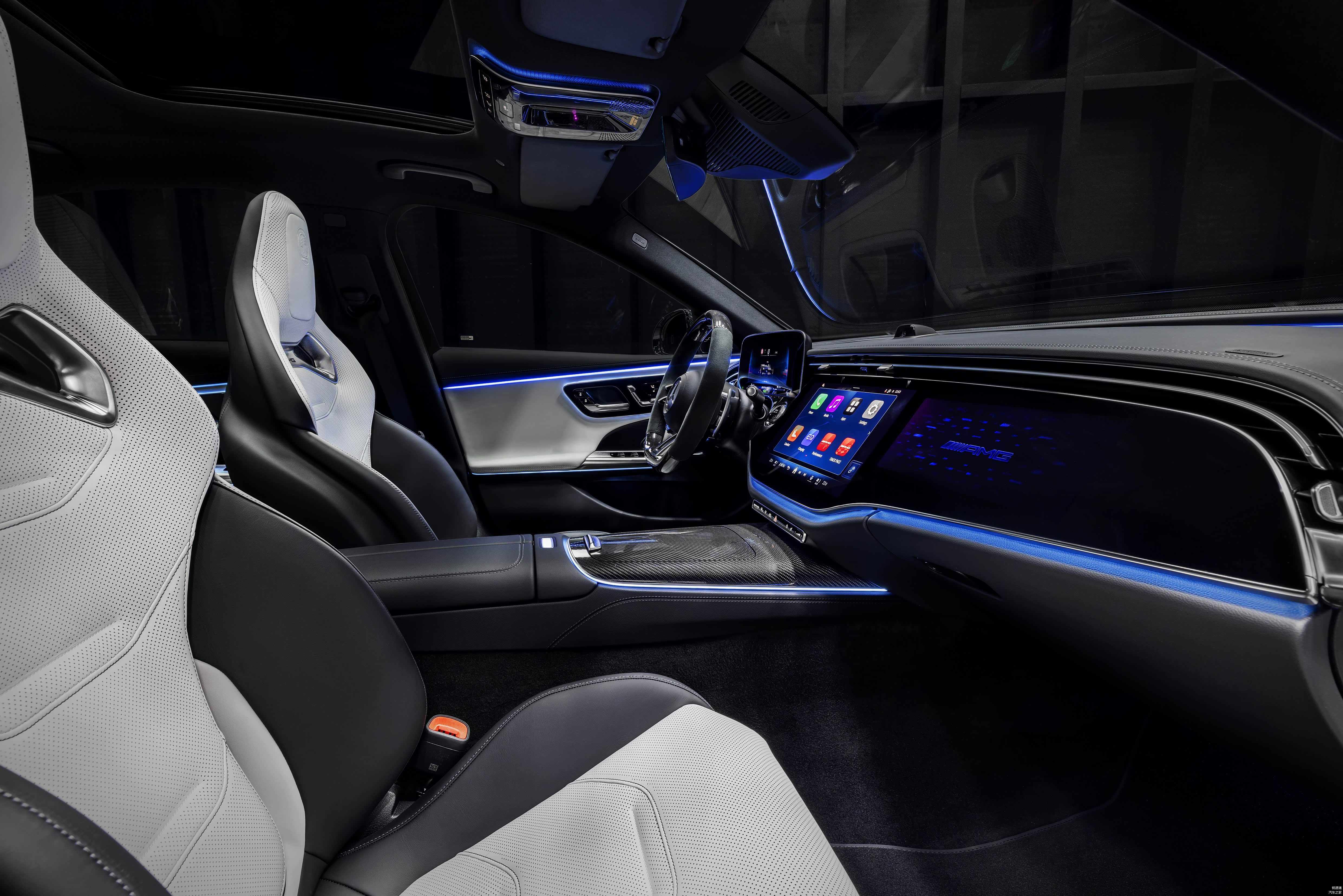 内饰方面:全新AMG E53副驾前的中控台专属AMG发光装饰,或者选装副驾屏,形成三屏中控。MBUX多媒体系统可提供AMG专用界面显示,包括混合动力系统电池温度及动力输出等信息显示,运动座椅是标准配置,采用ARTICO人造皮革/MICROCUT超细纤维覆盖,并具AMG专属标识,AMG高性能座椅作为选装件出现。