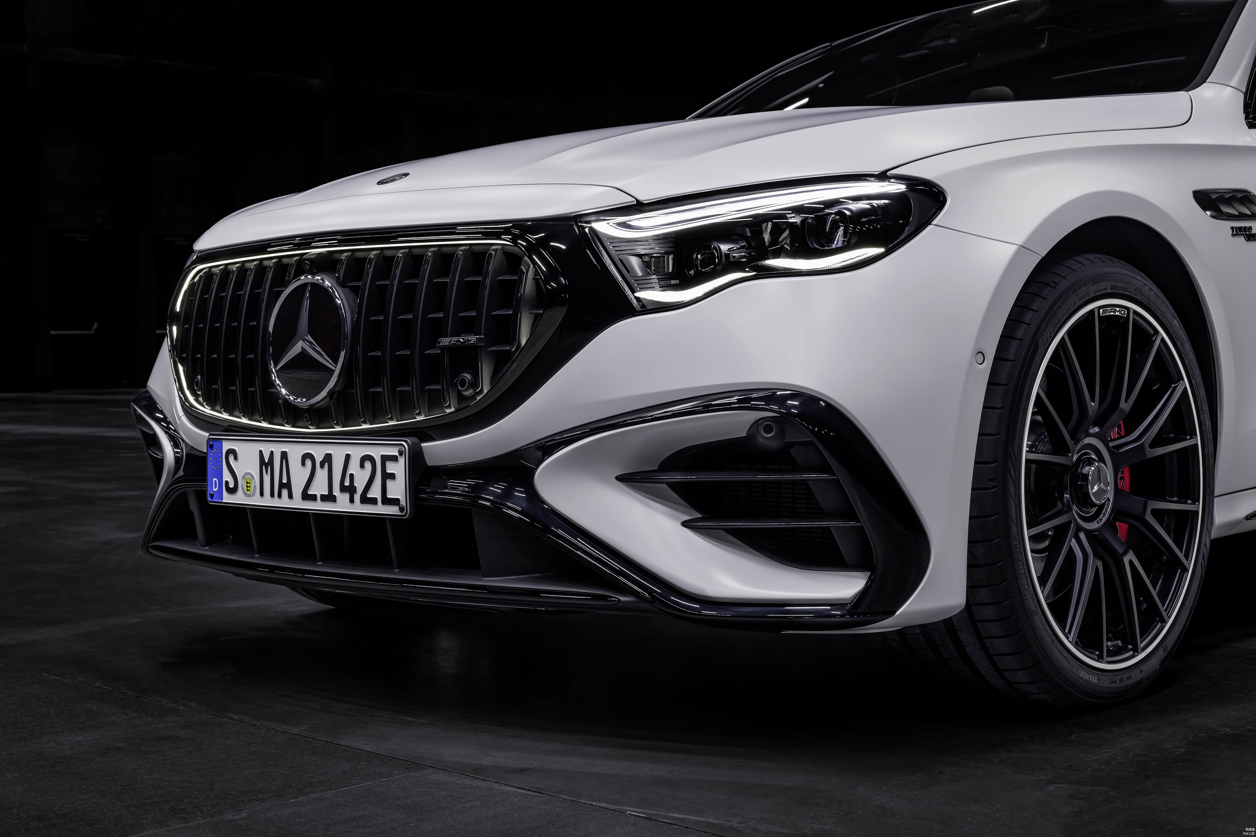 外观方面:全新AMG E53与其它AMG车型采用的直瀑式进气格栅不同,采用网格式进气格栅;相比普通版E级采用了宽体设计,每侧增加了11 毫米;更加张扬的导流口以及AMG扰流唇和扩散器,以及双边双出的圆形排气管都属于AMG车型的标配,此外三厢车型还增加了小尾翼。