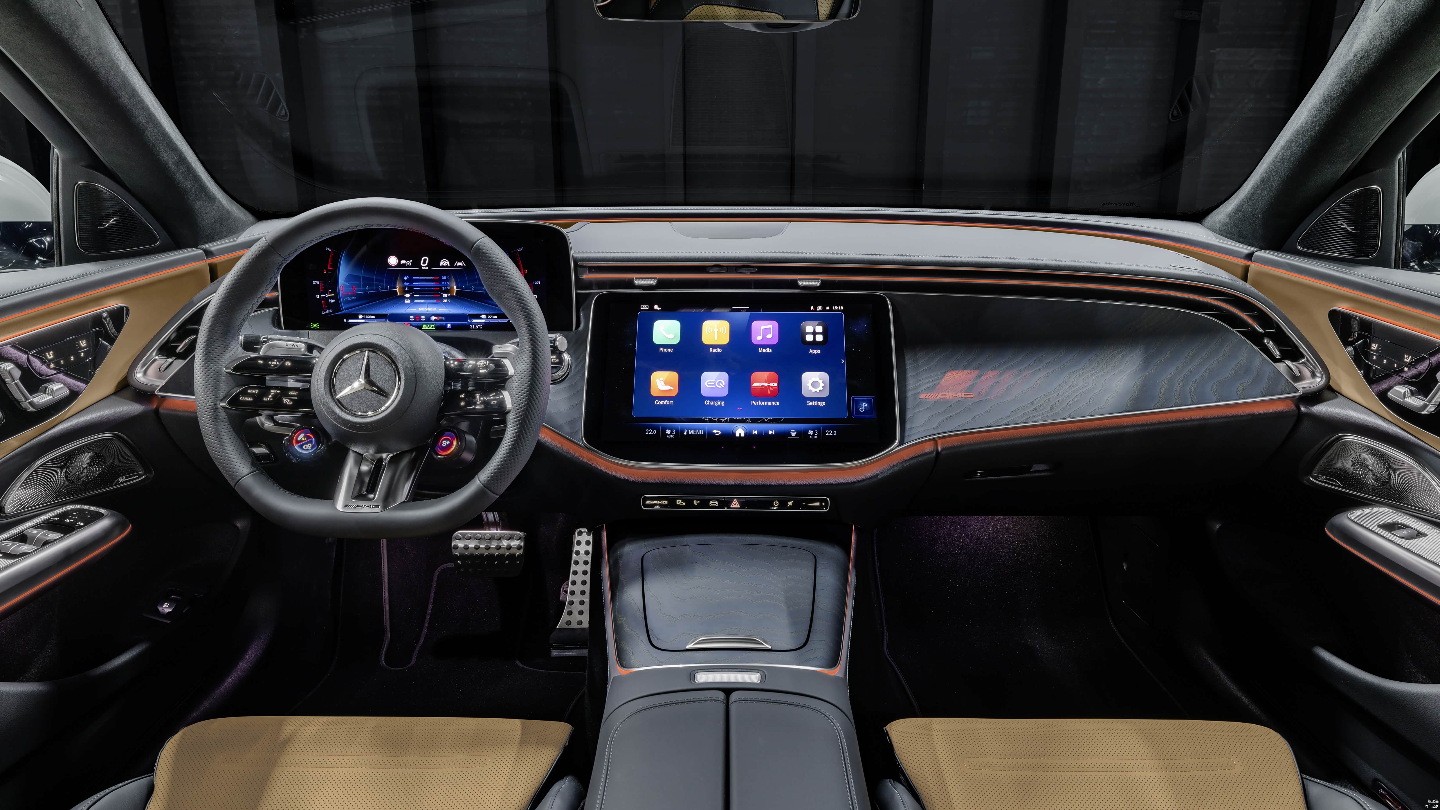 动力方面:全新AMG E53的动力总成是其亮点与全新C63一样采用插电式混合动力,但发动机采用了最大功率330kW的3.0升六缸直列发动机,配合集成在 AMG SPEEDSHIFT TCT 9G 变速器中120 kW 永磁同步电机,使得峰值输出达到450 kW(RACE START模式)和750 Nm最大扭矩,0-100 km/h 加速时间为 3.8 秒,旅行版车型为3.9秒。纯电模式下的最高车速被限制在140km/h,可用容量 21.22 kWh的电池组被安装放在后备箱地板下方,这个容量可提供不低于100公里的纯电续航里程,原车标配的交流充电器功率为11 kW,最大支持60kW的直流快充,支持在20分钟内将电池容量从10%充到80%,能量回收最大功率为120 kW,可通过方向盘后方拨杆进行三级回收力度调节。此外AMG Performance 4MATIC+四驱系统、AMG RIDE CONTROL钢制弹簧悬架、后轮随动转向、前四活塞刹车卡钳等AMG专属配置也没有缺席。