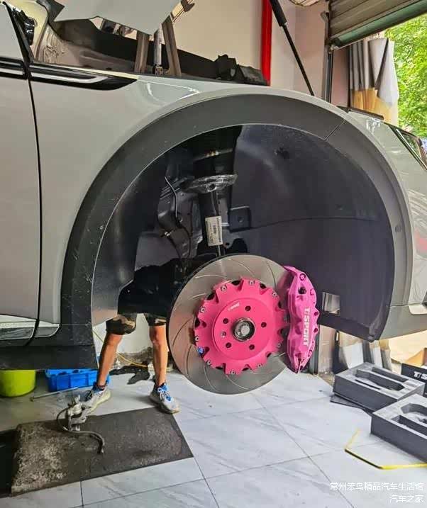 改装的第一步便是更换车身颜色。白哥哥选择了一身灰色的“衣服”,使整车外观更加低调而不失高贵。此外,他还将原车的轮毂换成了19寸奥迪RS4‘大宝剑’轮毂,搭配骚粉色TTSPORT6活塞卡钳套装,给车辆增添了一份动感与亮点。