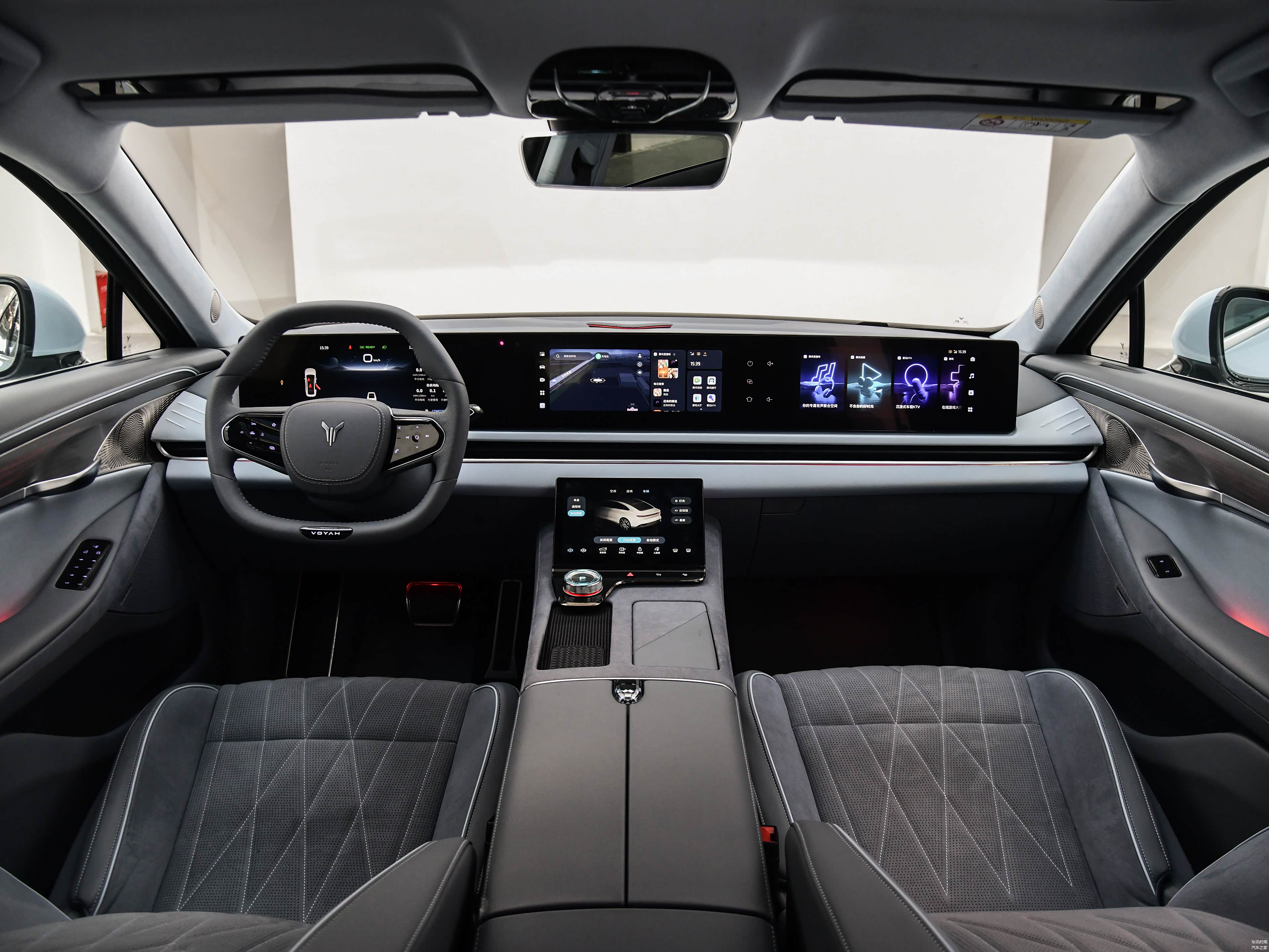车身尺寸长宽高分别为5088/1970/1505mm,轴距达到3000mm,定位为中大型车。座椅材质选用皮革搭配翻毛皮,手感极佳。前排座椅具备电动调节、加热、通风、按摩及座椅记忆(主驾驶侧)等功能;第二排座椅则配备了电动调节、加热、通风、按摩和腿托等功能,极大提升了驾乘者乘坐舒适。