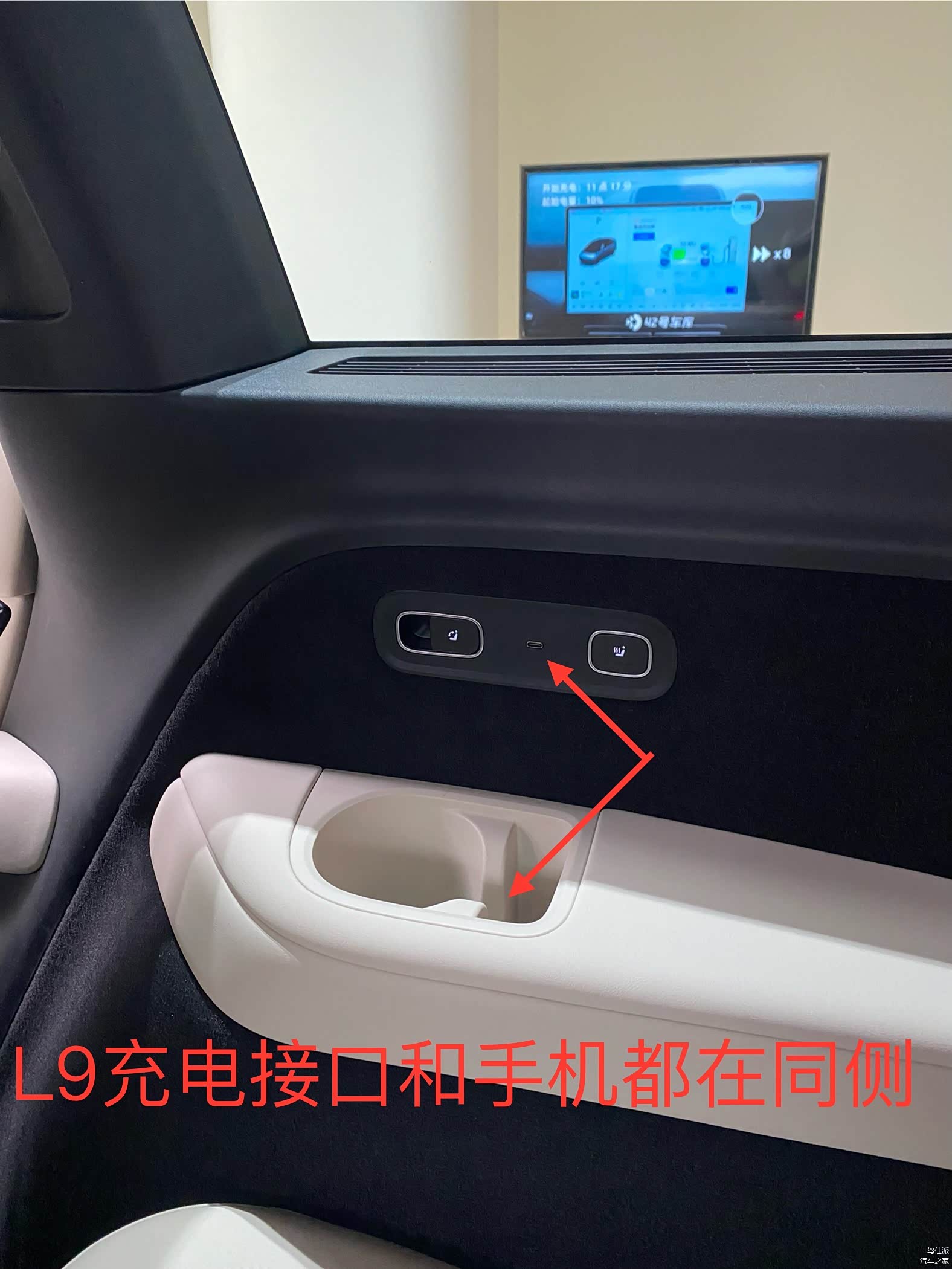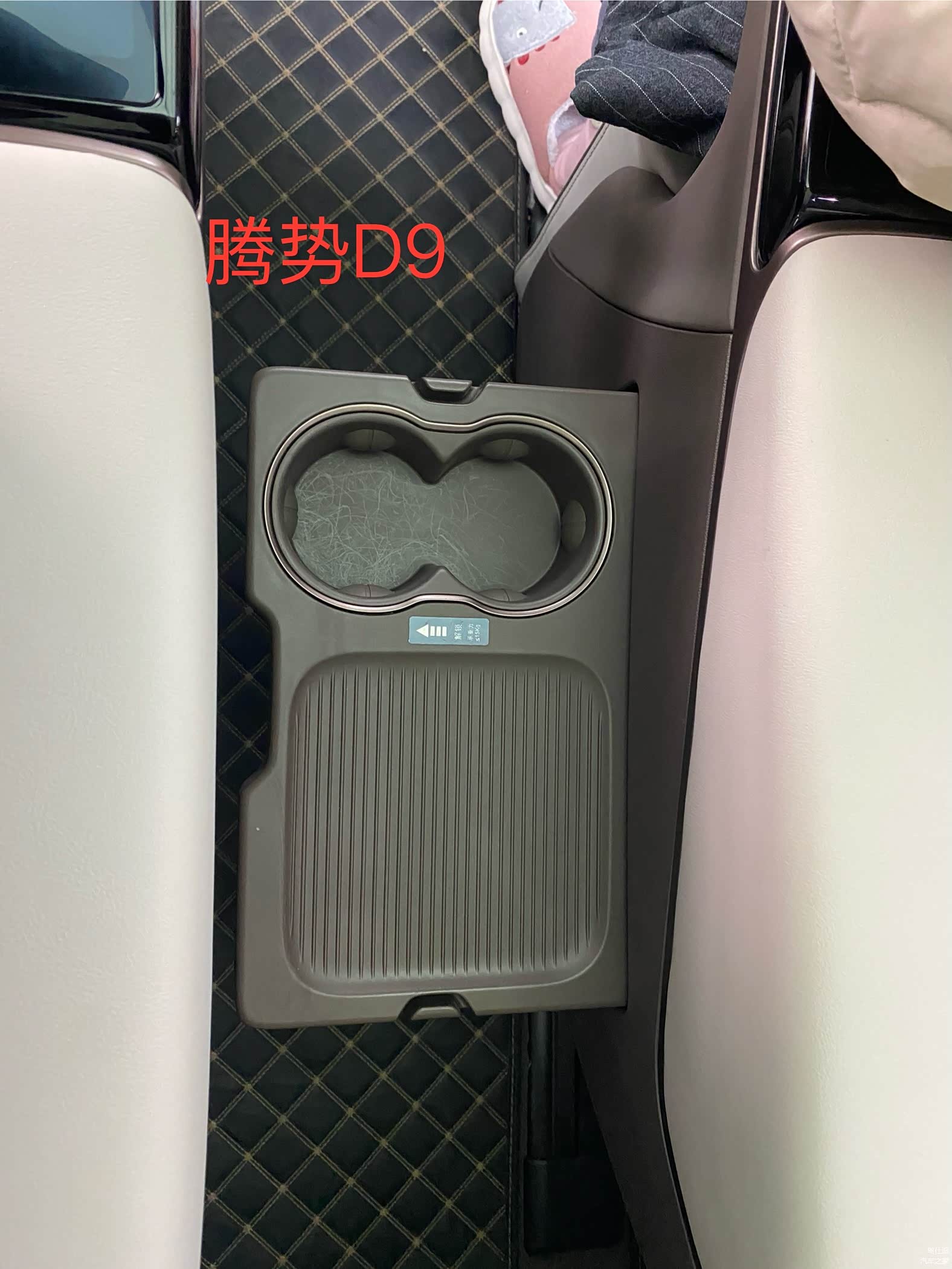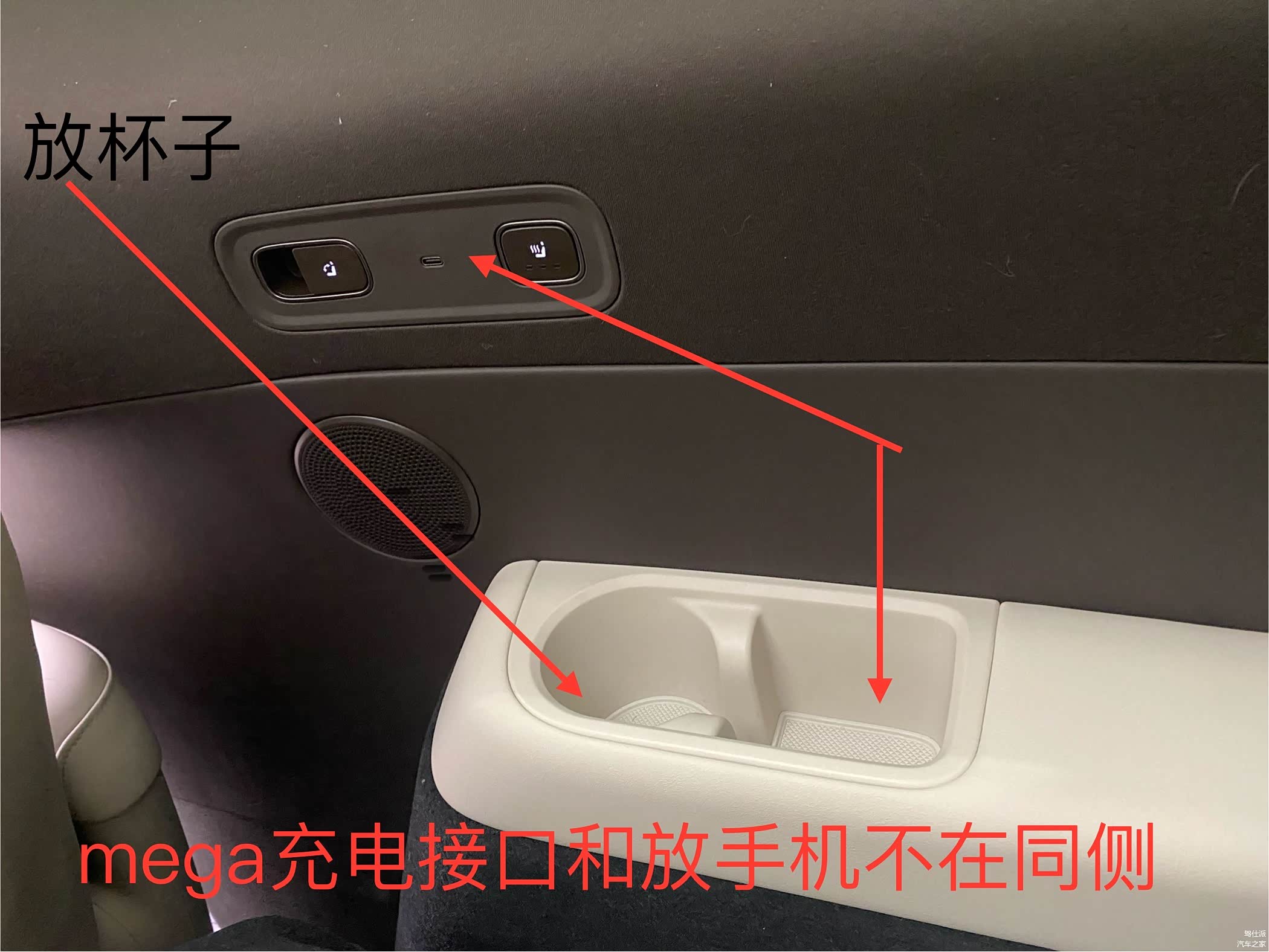 到第三排侧围的位置,我记得L9这里是充电线接口更靠近放手机的位置,但是MEGA因为车长增加了,这个盖板相对于放手机的位置更靠前,那为何不让手机与杯托交换一个位置呢,让手机还隔着一个杯子去充电?