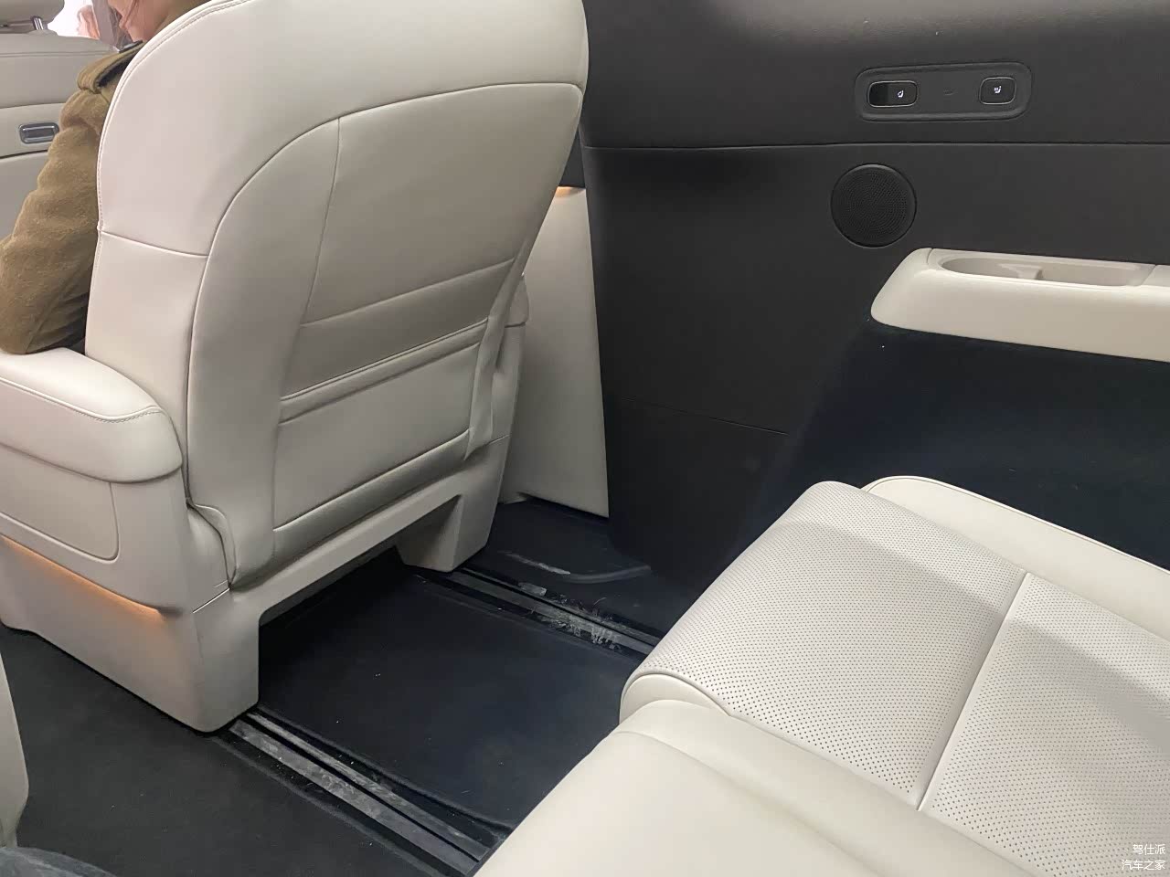 小鹏X9三排因为考虑要翻折放平的原因,在加上使用了更传统的结构,厚度方面差了很多。
