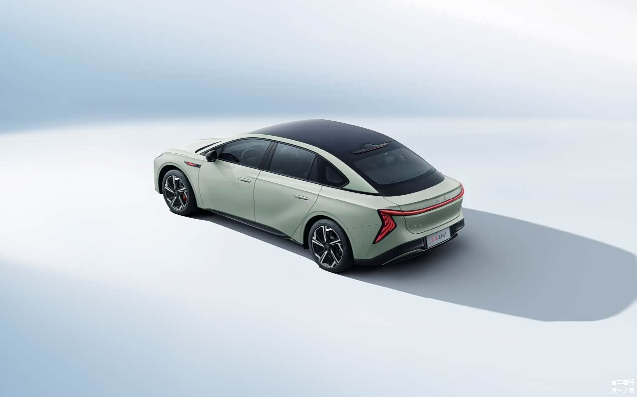 车尾的托举式集成尾部鸭翼与前脸相互呼应、相得益彰,同时也兼具了优化空气动力学性能的功能,贯穿式尾灯也非常大气。