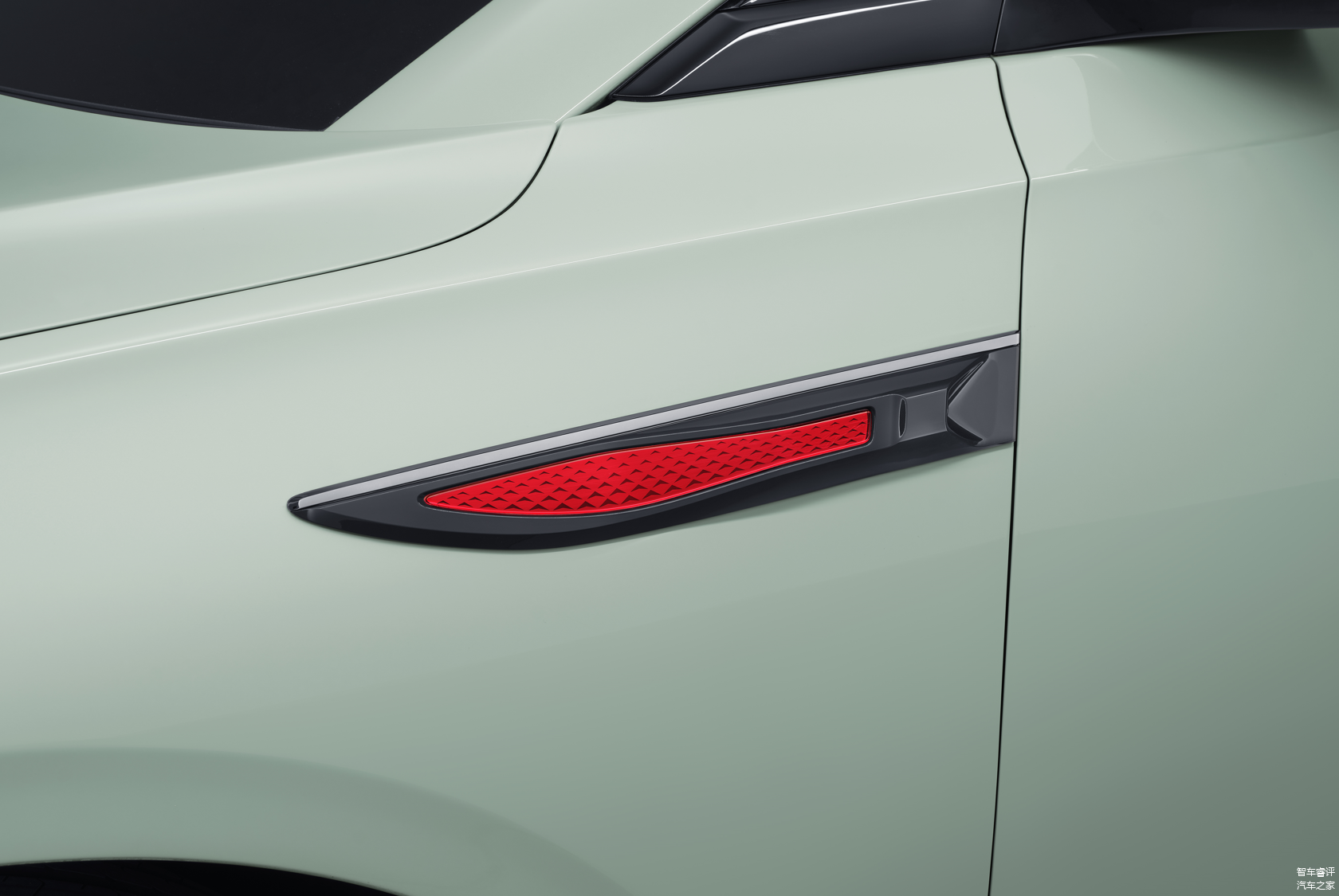 值得一提的是车身侧面还有一个可选装的旌旗标识灯,具有独特的设计感。不过,这个颇有新意的设计在入门版车型上是不能选装的,略有遗憾。