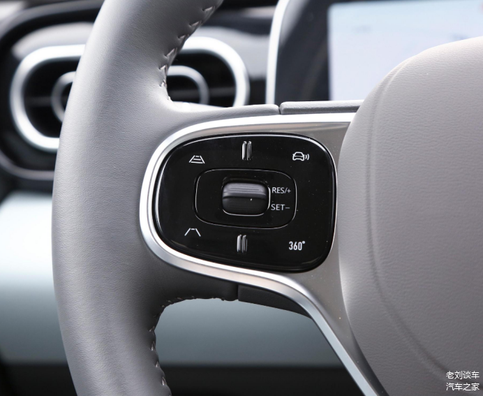 内饰风格比较简单,方向盘圆润饱满,内部填充物扎实,握住的时候手感比较实一些。两侧有着多功能按键,在我们行车的时候,如果想调整音量、音乐啥的,直接通过方向盘来操控就好,比较方便且安全一些。