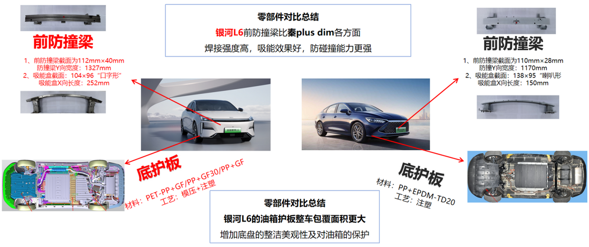综上所述,与售价更低的秦plus相比,银河L6在安全性方面更加舍得下本。在用材上更加省心,设计更加出色,安全性能更高。从个人角度来看,低售价是以安全性能的缺失为代价的车辆并不是一个好的选择。毕竟在交通出行中,无论是主动安全还是被动安全,都是至关重要的。经过拆车对比,银河L6的卓越安全性能得到了进一步证实。