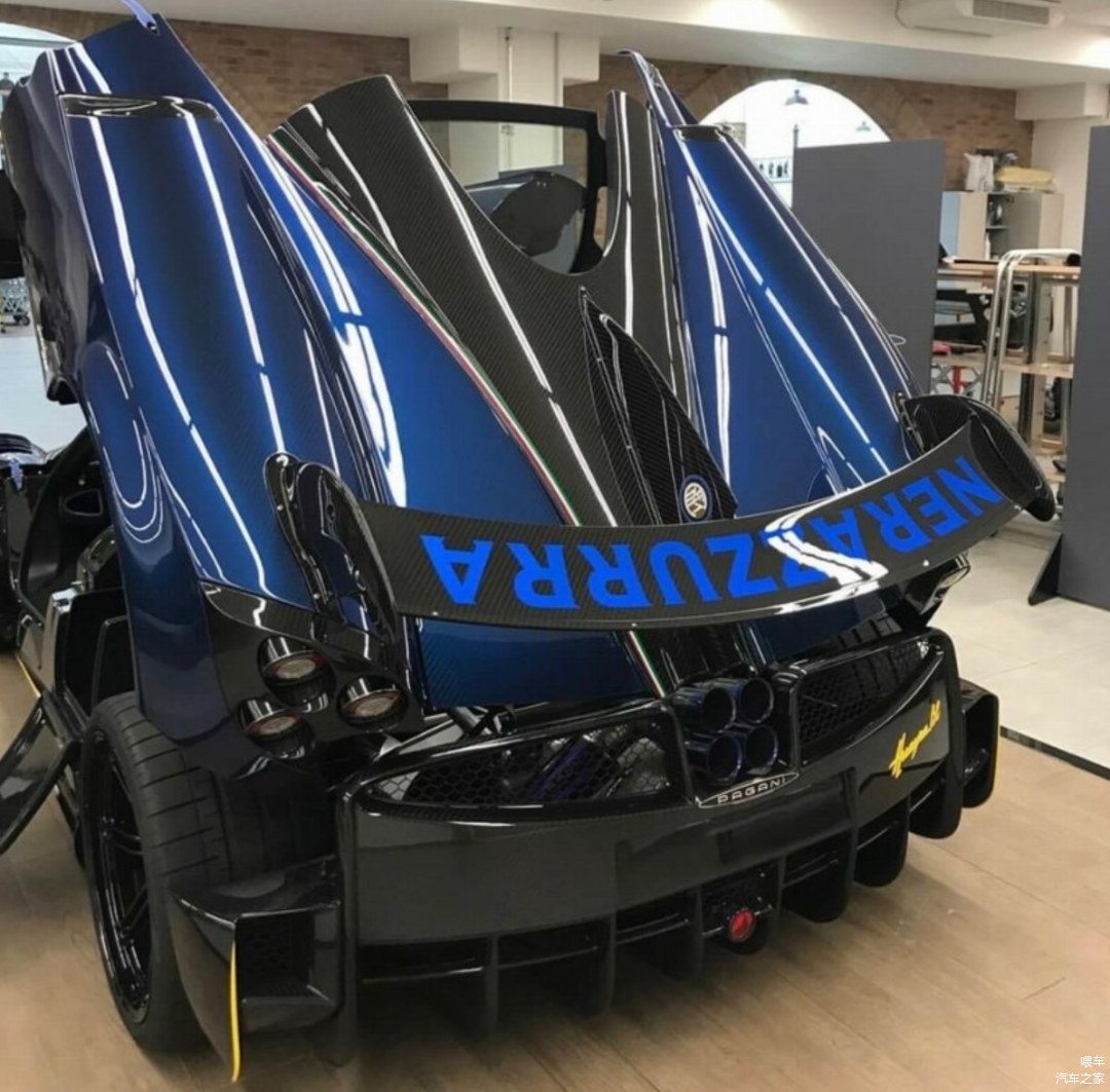 张康阳开上这台车的时候只有20多岁,每次都是亲自驾驶。帕加尼都离不开定制,这能体现车主个性的一面,最为显眼的是尾翼,上面有一行英文字(nerazzurri),是意大利语,也是国米球迷的称谓,nera是黑色,azzurri是蓝色,合起来就是黑蓝,也可以说是黑蓝军团。尾鳍上还有一个圆形标识,是国米的队徽标。