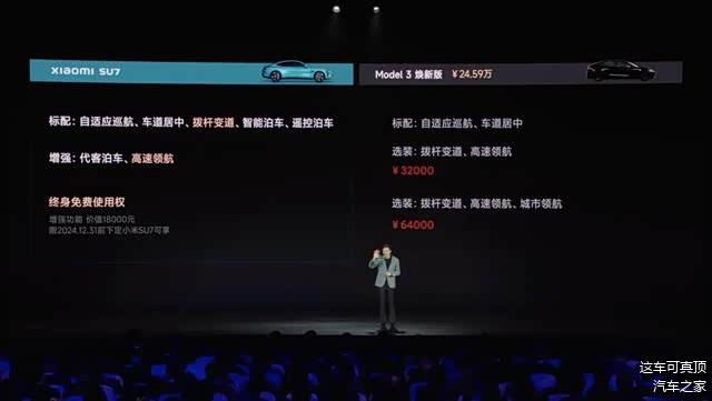 现在国内这个价位的新能源车有很多,极氪的、蔚来的、小鹏的都有,而且号称技术一个比一个先进,SU7为什么不和他们对比,一方面是“蔚小理”的掌门人就在台下,和他们比多少有点尴尬,另一方面,其他国产新势力开发布会的时候,也喜欢对标特斯拉,虽然他们不承认,但8年前上市的特斯拉仍然是标杆,只有和标杆比,超越了标杆,才能凸显自己的强大。