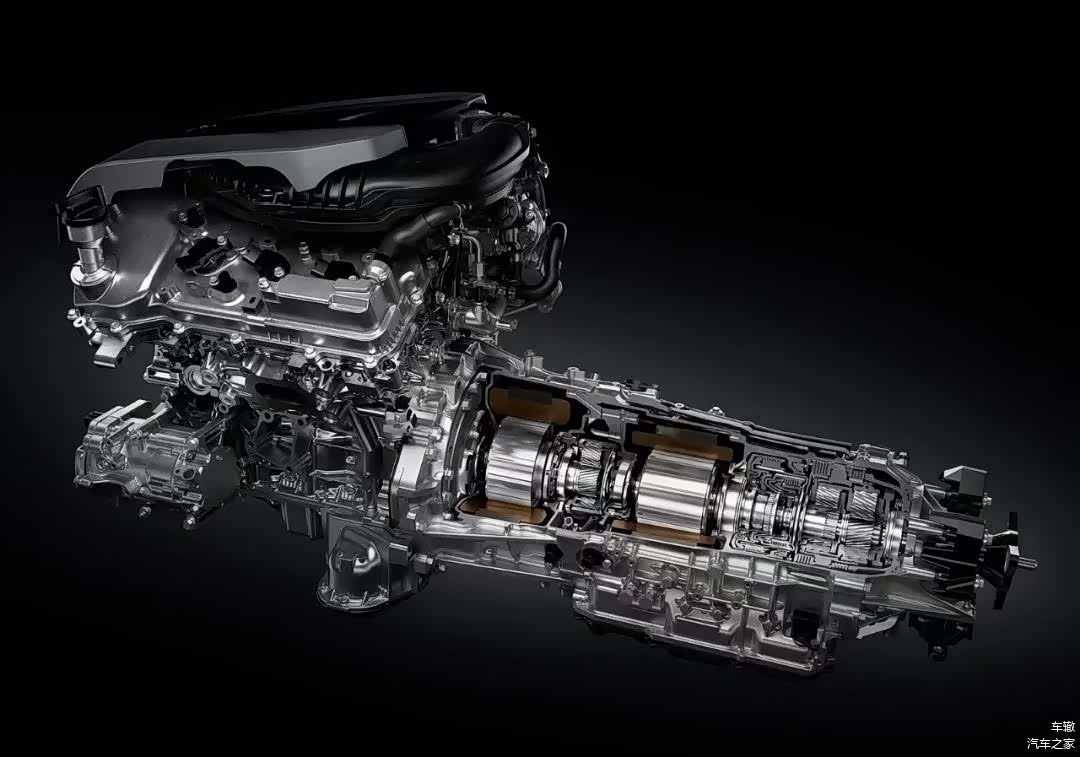 刚才说到丰田为他们的高端车设计了特殊的解决方案,说的就是雷克萨斯LS 500h,它用的也是功率分流,但在行星齿轮组后面,它还接了一个4AT变速箱。他们给行星齿轮组预设了三种速比,与4AT的前三个挡组合成九个挡位,再加上4AT最后一个挡位,3×3+1=10,一共是十个挡位。