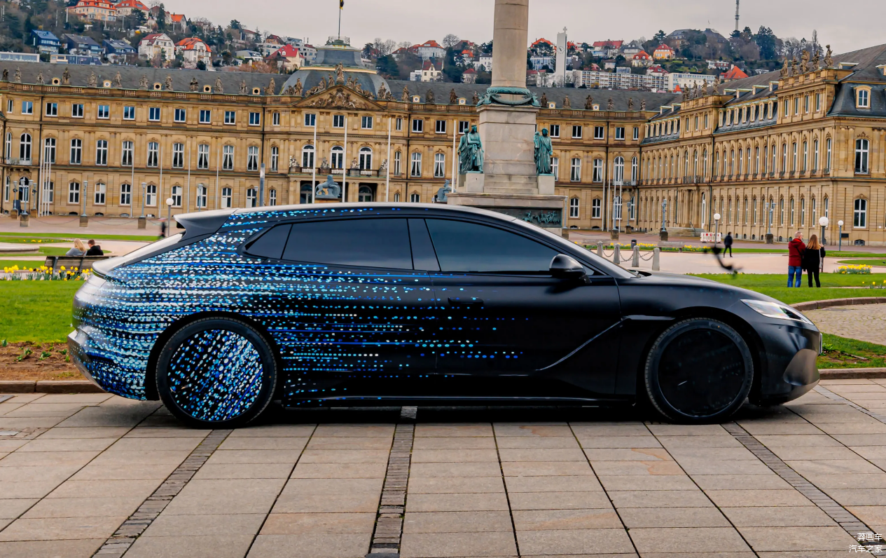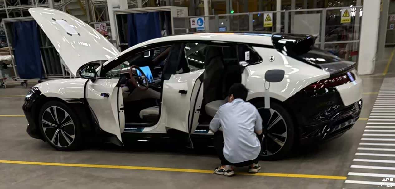 可以看到这款新车采用简洁、流线型、低风阻设计,配备家族式前脸。从侧面看,这款新车车身较为扁平,离地间隙较低,采用了新能源汽车流行的无框车门以及隐藏式门把手。车尾方面,由于这款新车的伪装较为严密,还无法观察到尾灯设计。